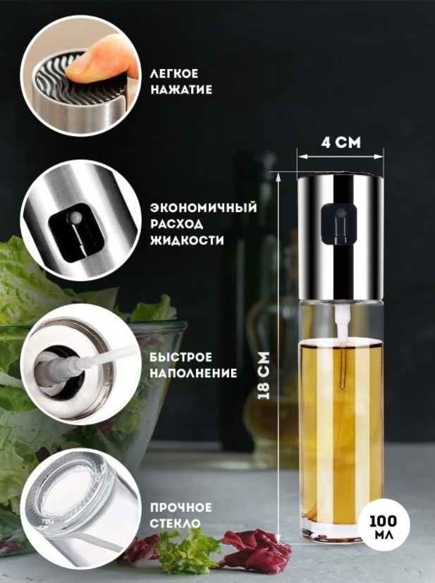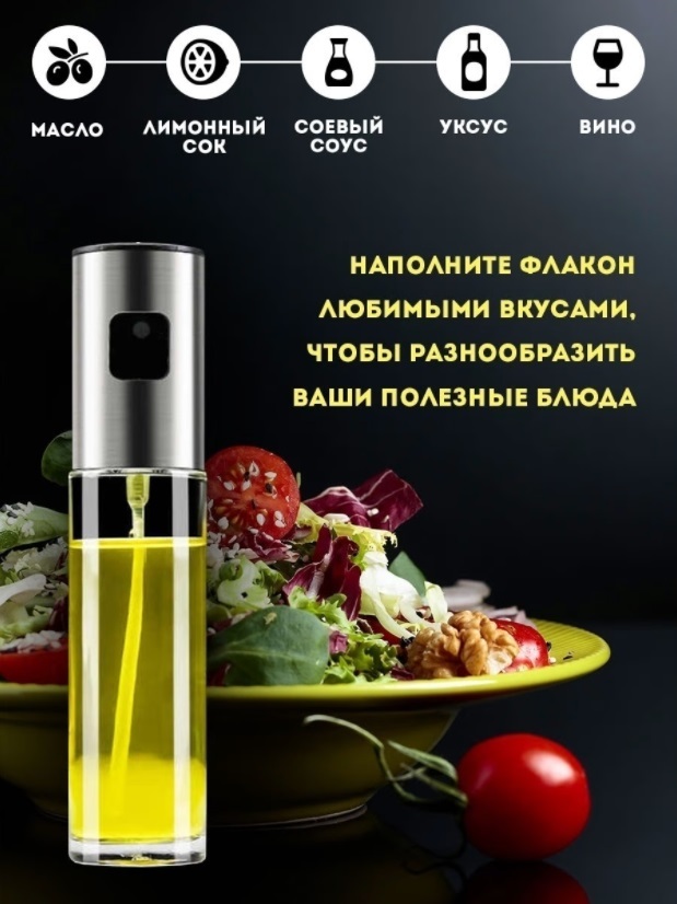 Распылитель для масла. Именно распыляет, а не бьет струей!Распылитель дозатор для растительного масла - это удобное и простое в своем использовании приспособление, которое поможет Вам отследить подачу масла, уксуса или соевого соуса в салат перед сервиров