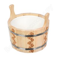 Комплектация:Ушат-шайка с пластиковой вставкой 1 шт. Описание:Ушат является неотъемлемым компонентом банного процесса. Обычно его используют в качестве емкости для горячей или холодной воды, запаривания веника, а также для приготовления разных оздоровител