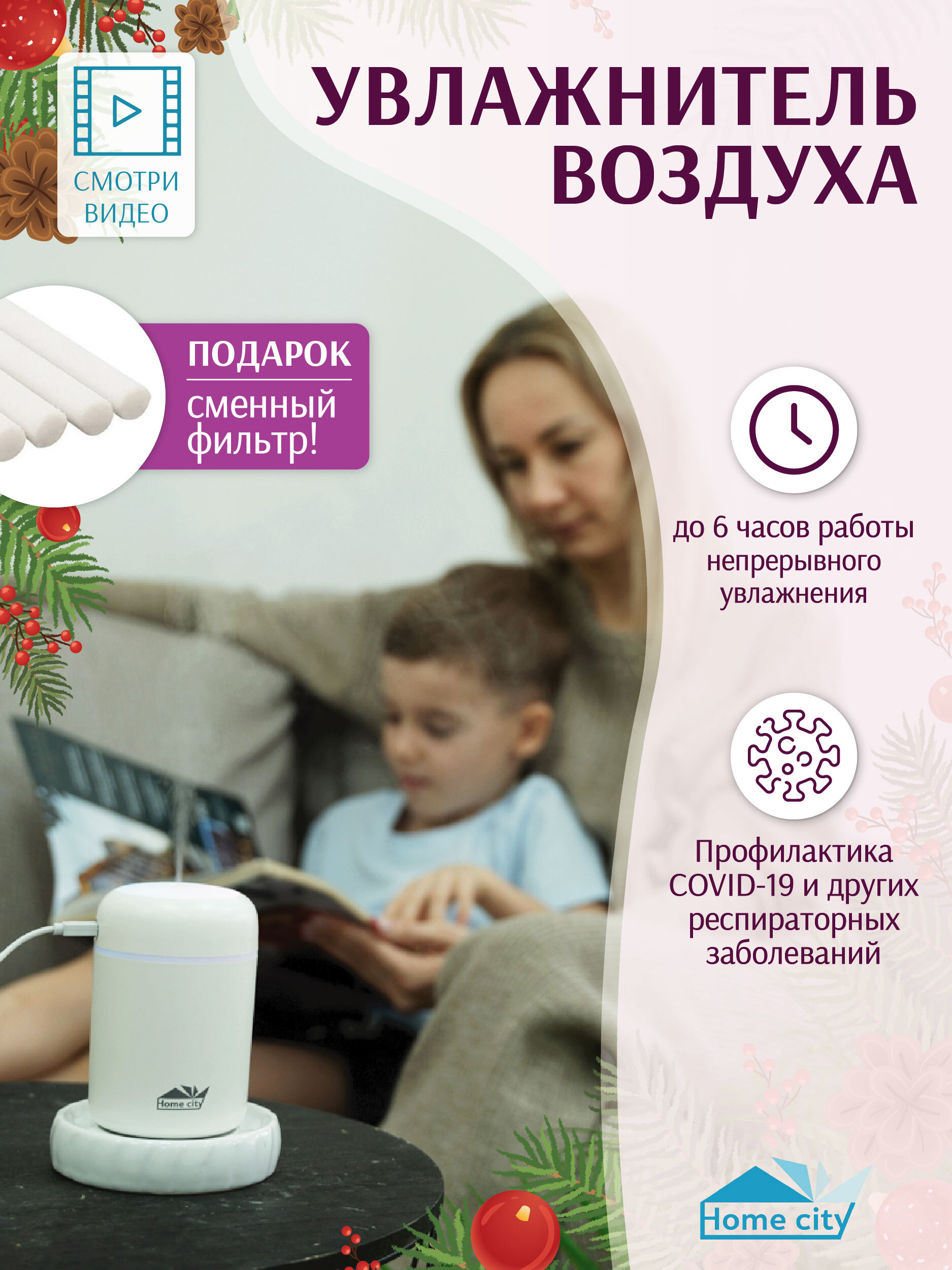 Комплектация:Увлажнитель воздуха - 1 шт., ватный фильтр - 2 шт., USB-кабель - 1 шт., руководство по использованию - 1 шт.Описание:Бесшумный ультразвуковой увлажнитель воздуха от Home city подарит Вам комфортный микроклимат в доме, квартире, офисе.Портатив