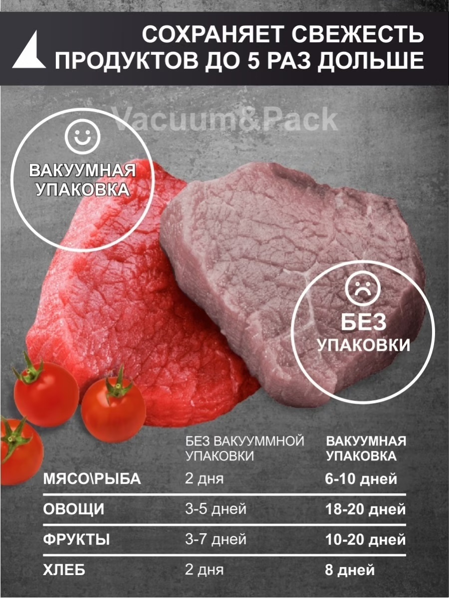 Вакуумный упаковщик – незаменимый помощник в сохранении свежести продуктов!Вакууматор бытовой поможет увеличить сроки хранения в холодильнике в несколько раз. Запайщик пакетов сохранит свежесть и внешний вид.Упакованные в вакуумный пакет продукты не обвет