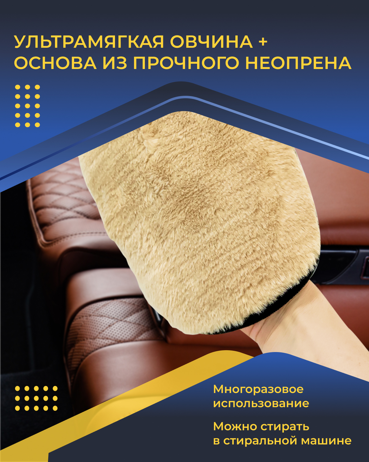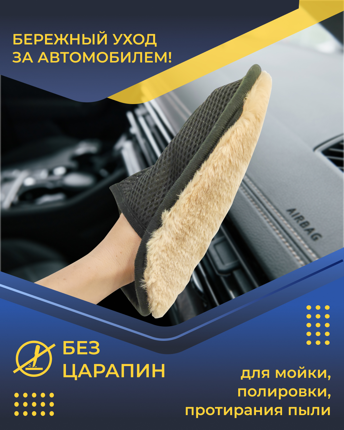 Комплектация:Перчатка-варежка 1 шт.Описание:Меховая варежка на пальцы для бережной мойки/полировки/протирания пыли в автоРабочая часть изготовлена из ультрамягкой искусственной овчины, мягкая и удобная на ощупь, а основа – из прочной и мягкой неопреновой
