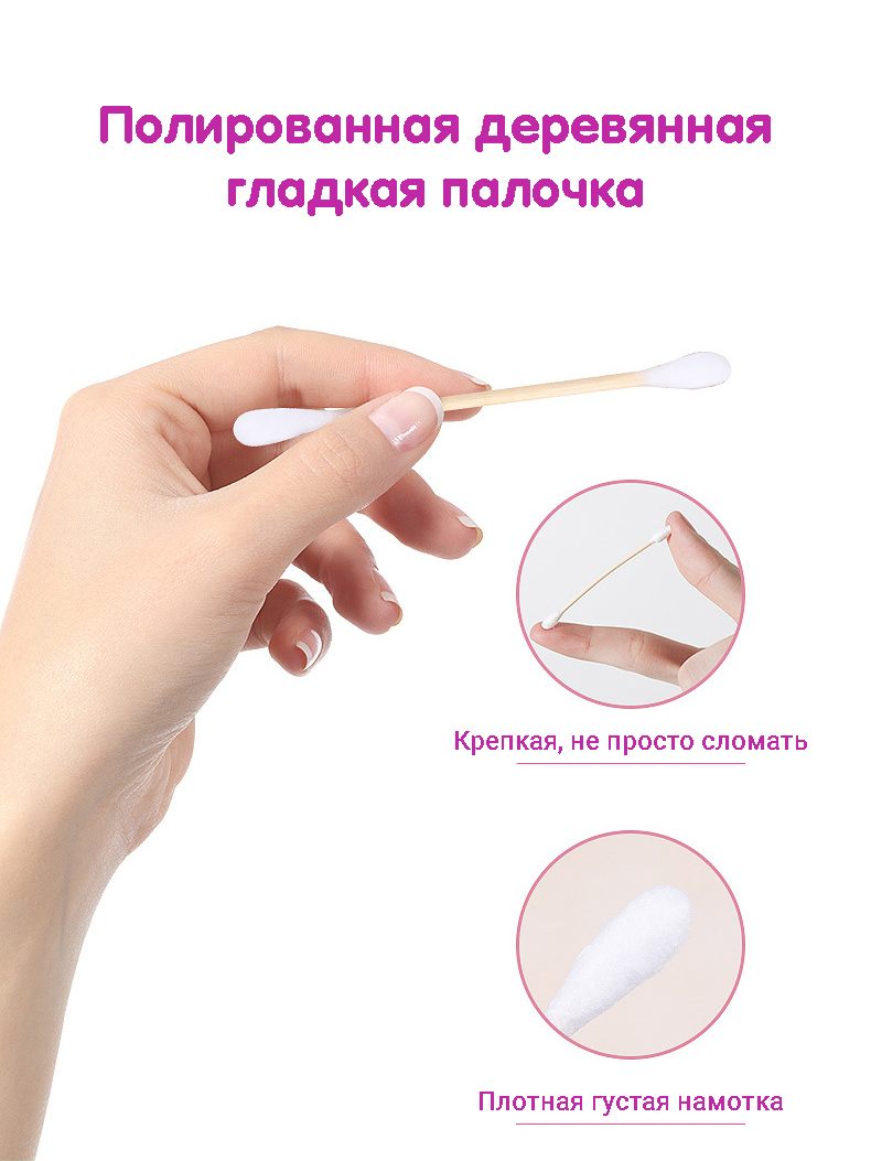Ватные палочки деревянные бамбуковые. Крепкие в качественной упаковке. На выбор 200, 300 и 500 штук.