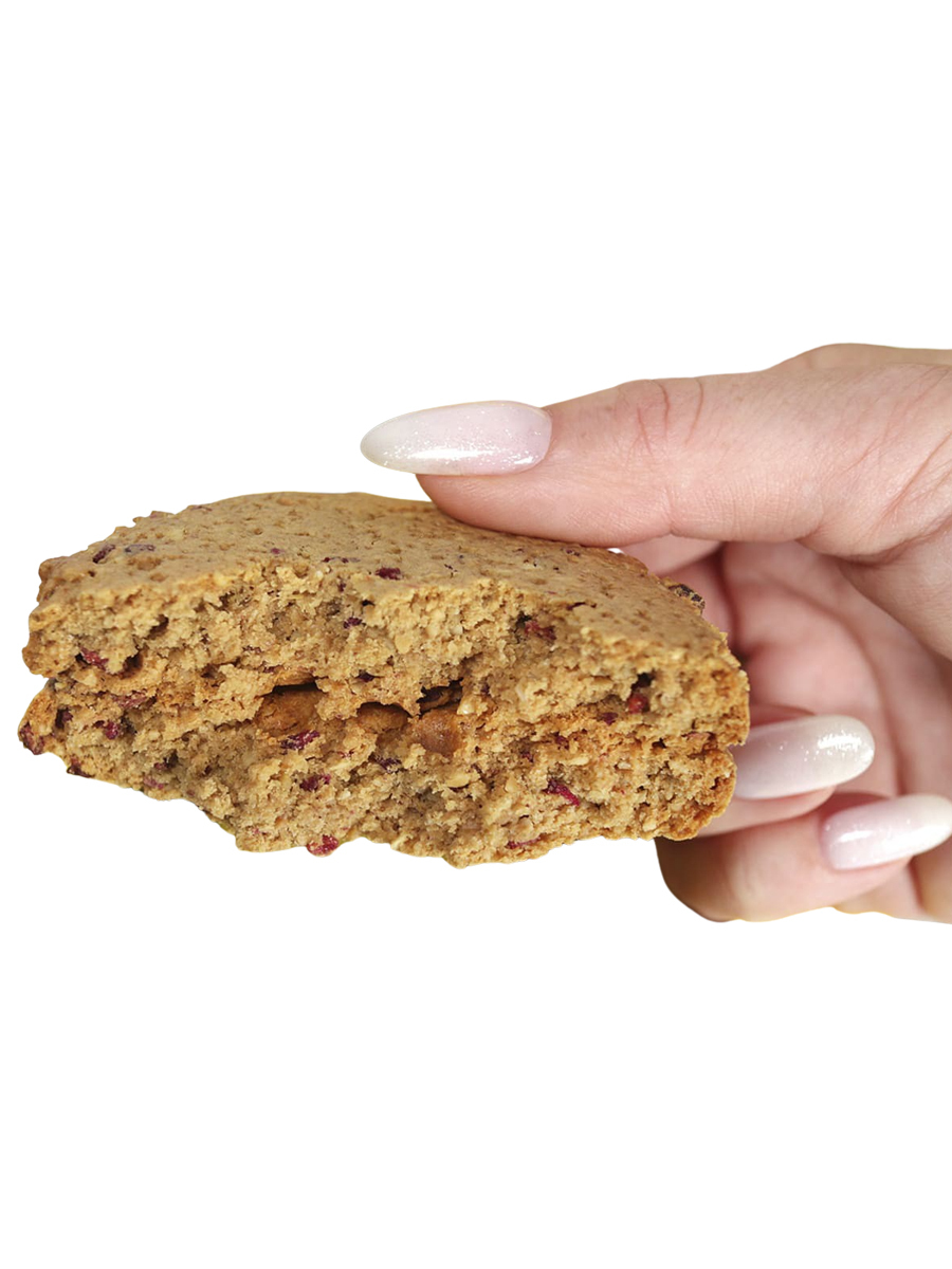 В составе веганского протеинового печенья Bombbar используются заменители молочного протеина: изолят горохового белка с добавлением растительных пищевых волокон. Этот десерт на 25% состоит из протеина, а потому дарит продолжительное и стабильное чувство с