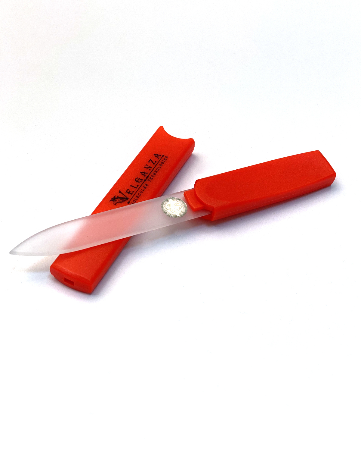 Двухсторонняя стеклянная (хрустальная) пилка в защитном пластиковом футляре. Основное предназначение стеклянной пилочки - это обработка кутикулы (кожи). Так же подходит для ЛЕГКОЙ коррекции натуральных и искусственных ногтей. Маникюрная пилка от компании