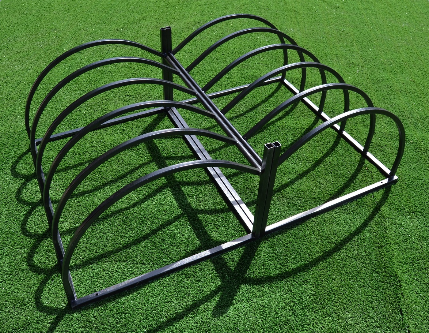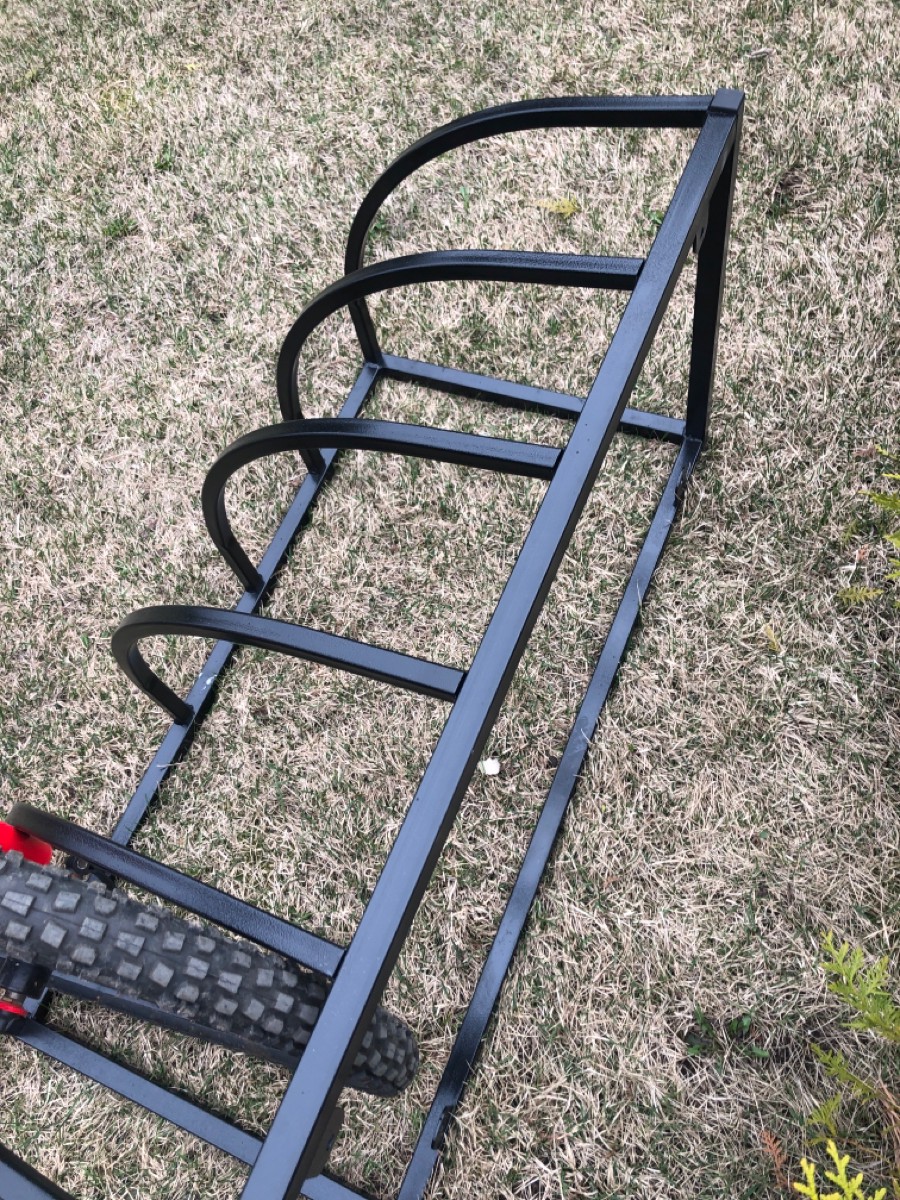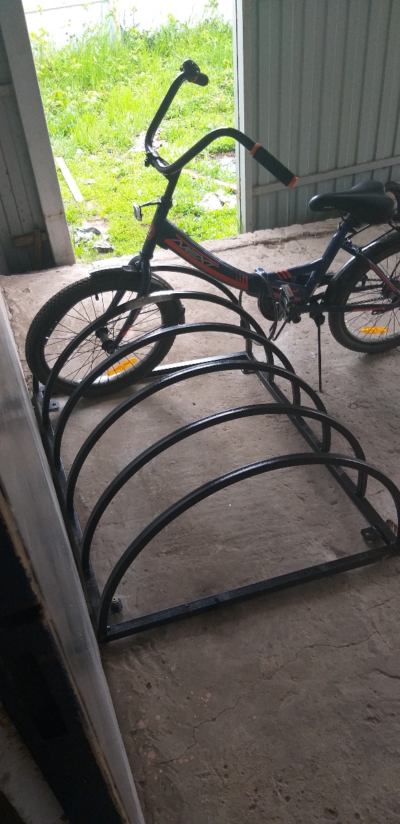 Модульная велопарковка на 5 велосипедов.Изготовлена из профильной трубы 25 х 25 и 20 х 20 мм.В вертикальной положении Размер 1050 х 530 мм. Высота 800 мм.В горизонтальном положении Размер 1050 х 800 мм. Высота 530 мм.Покраска в черный цвет.Вес 10 кг
