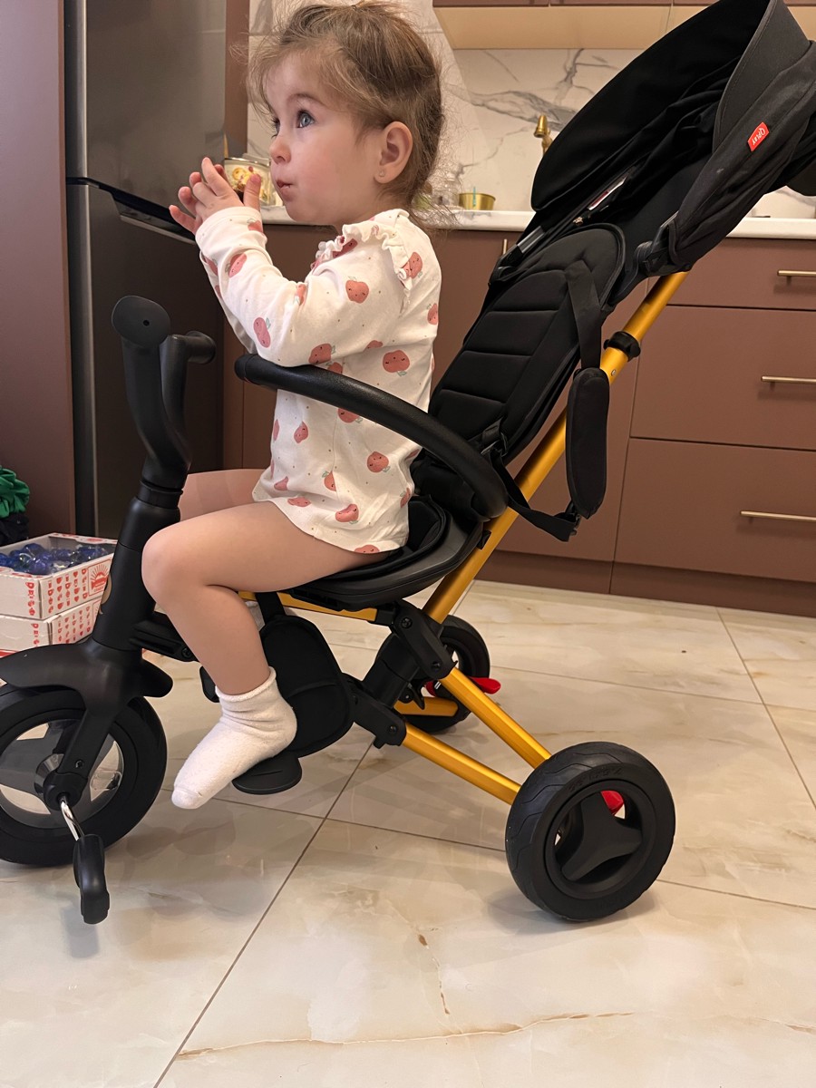 Складная рама.Родительская ручка управления регулируется по высоте.Защитный капор от солнца.Регулируемая наклонная спинка сиденья.5-точечный ремень безопасности.Сиденье с функцией "360" - положение ребенка по ходу движения и против хода движения.Легкая и