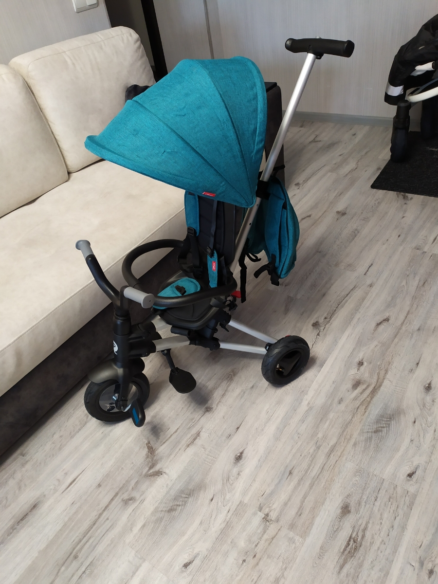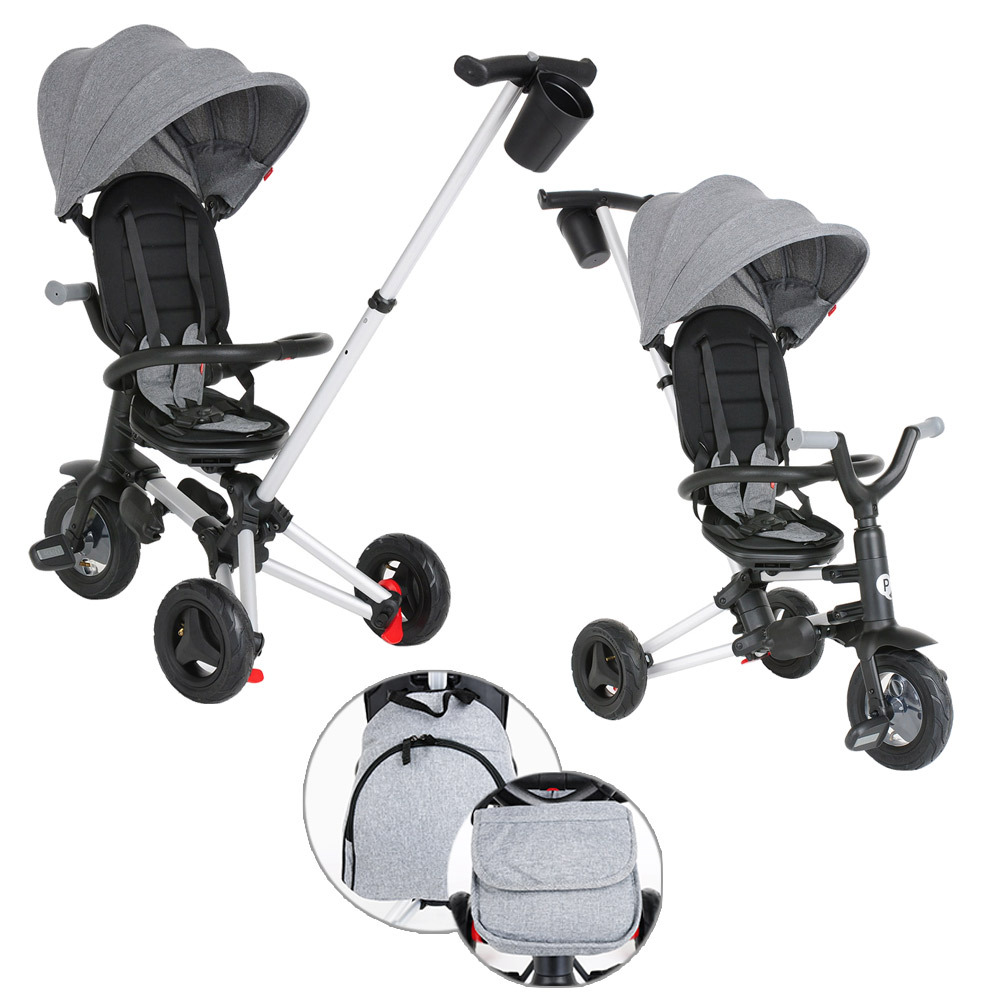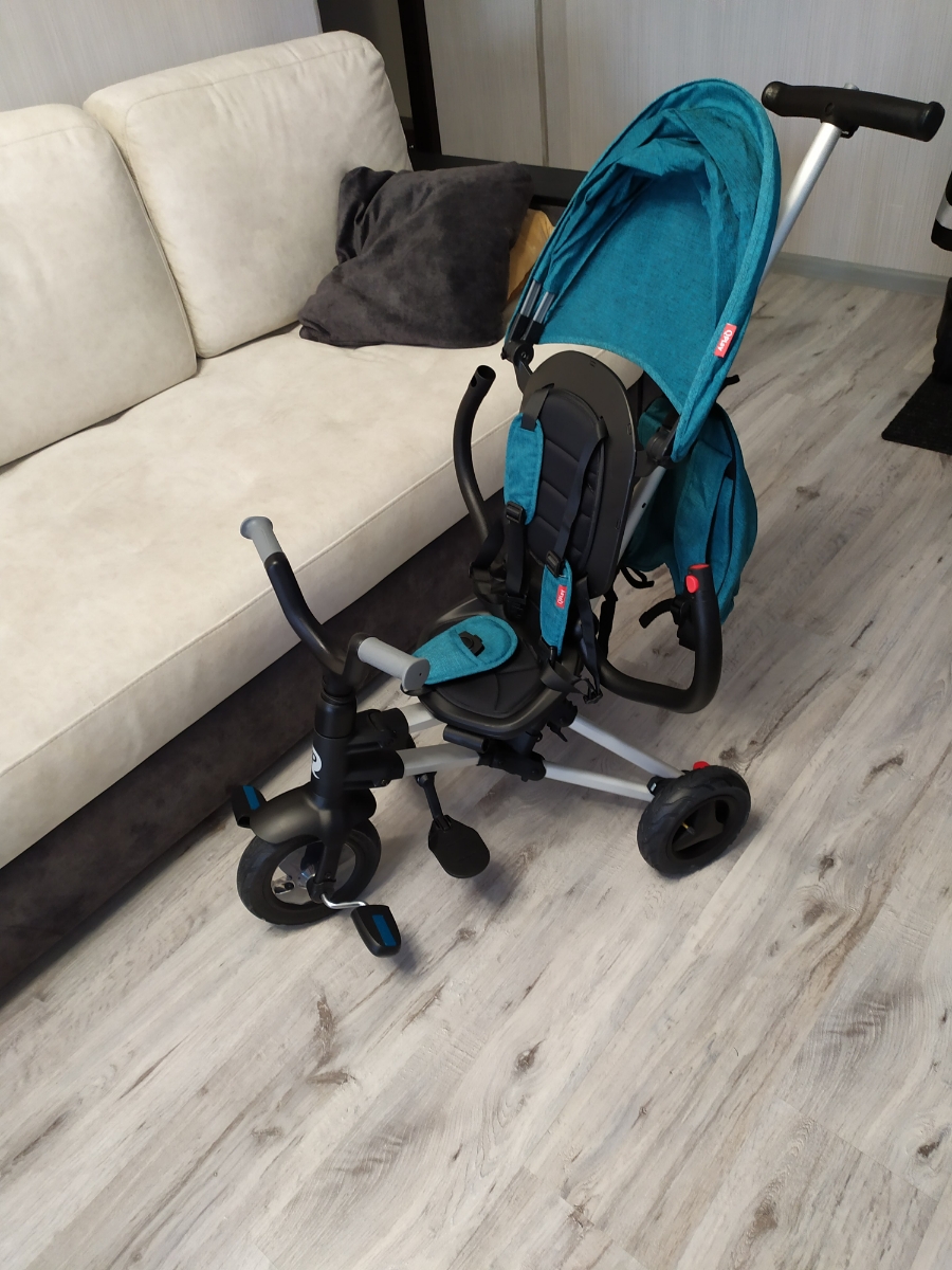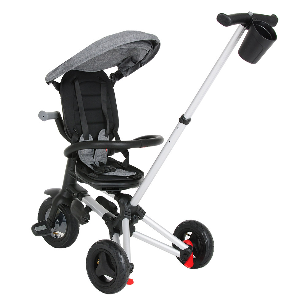 Складная рама.Родительская ручка управления регулируется по высоте.Защитный капор от солнца.Регулируемая наклонная спинка сиденья.5-точечный ремень безопасности.Сиденье с функцией "360" - положение ребенка по ходу движения и против хода движения.Легкая и