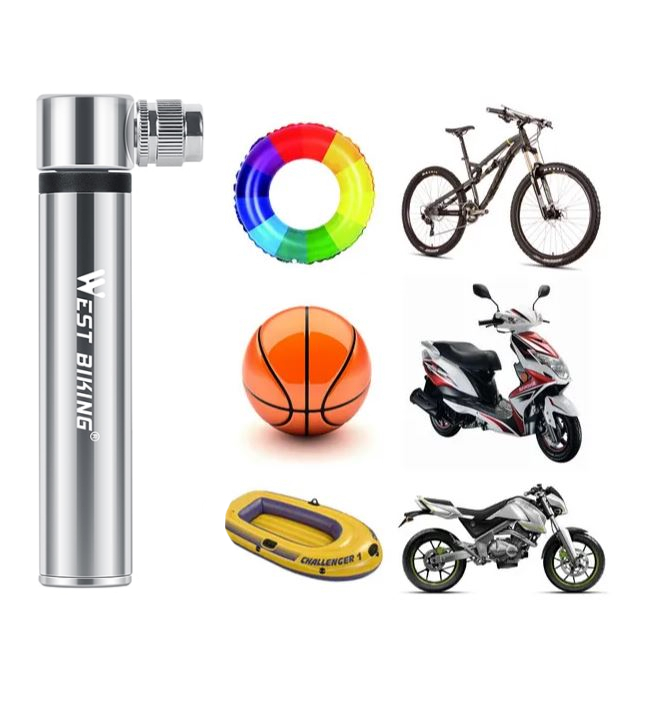 Насос велосипедный имеет диаметр отверстия под велосипедный и автомобильный ниппель. Насос для велосипеда изготовлен из алюминия, что придает ему повышенную износостойкость. В комплекте также идет игла для мячей и несколько насадок для подкачки иных предм