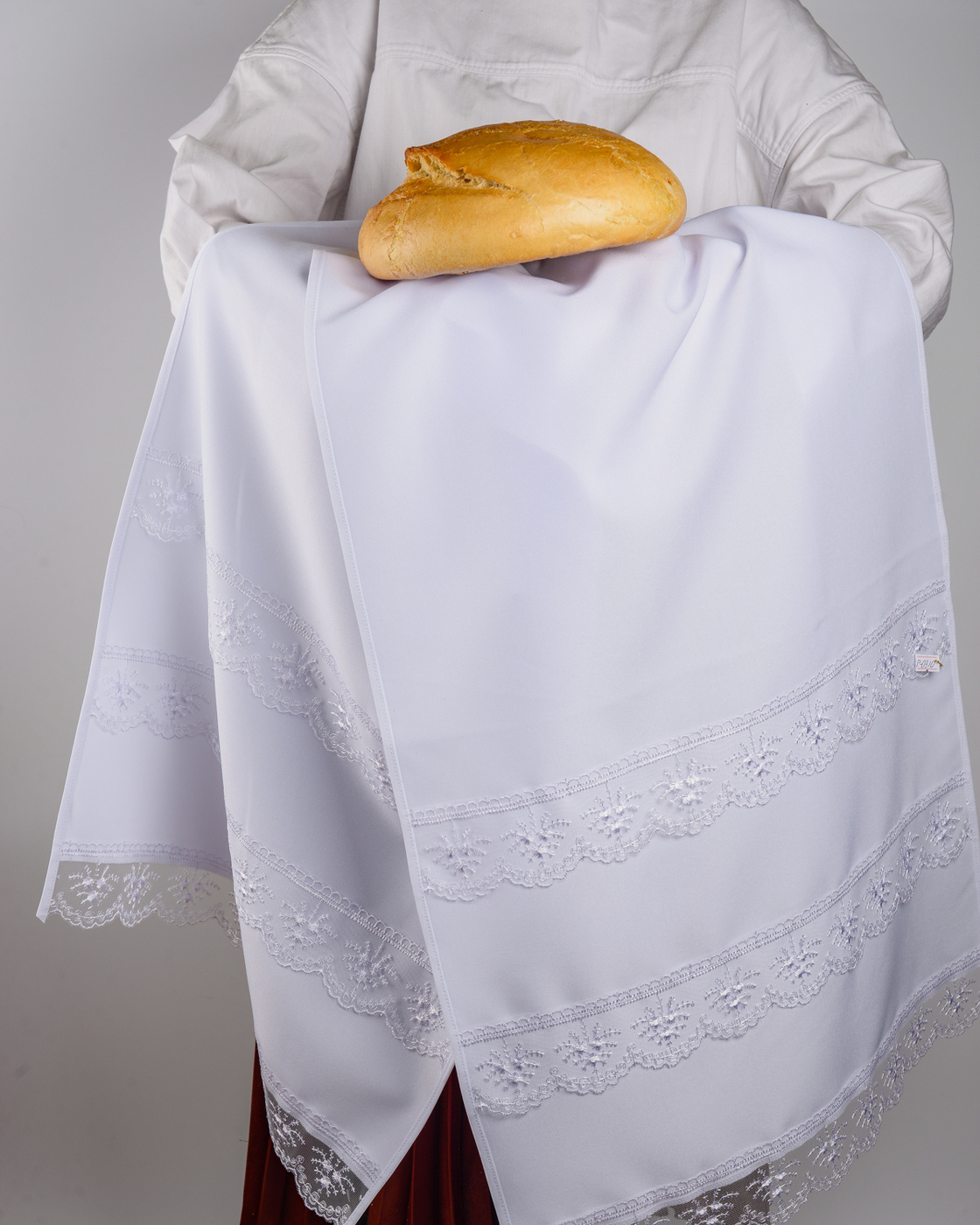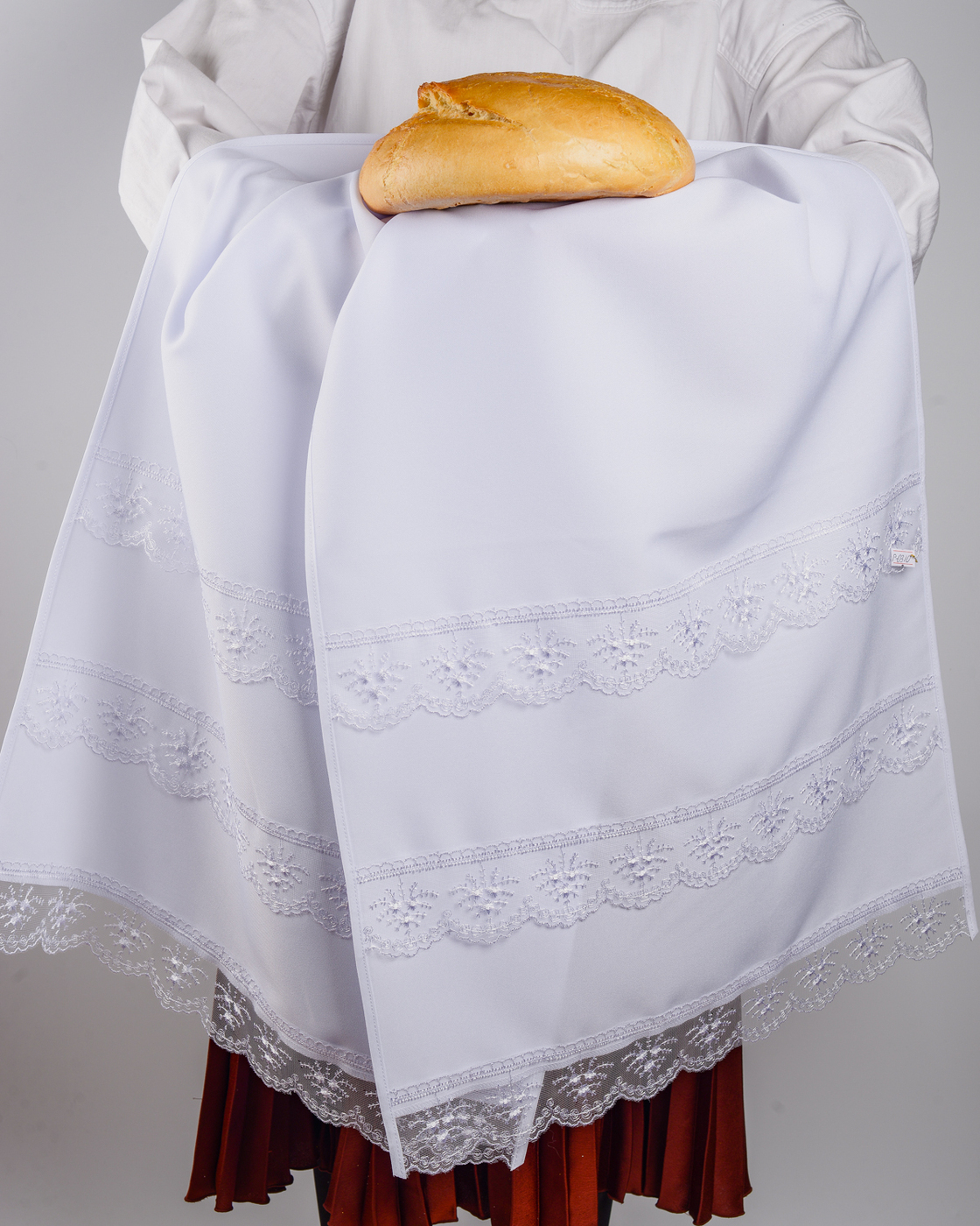 Комплектация:1 рушникОписание:Свадебный белый рушник с тонким кружевом по традиции используется для обряда венчания и угощения хлебом и солью новобрачных после ЗАГСа. Этот аксессуар ручной работы может быть также отдельным подарком на свадьбу, который укр