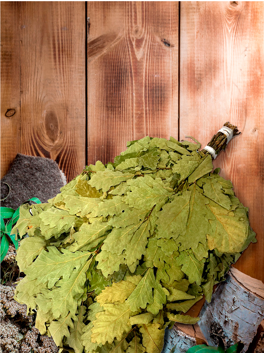 Благодаря плотным листьям дубовый веник эффективно нагнетает пар. Банные процедуры с дубовым веником благоприятно воздействуют на организм, выполняют функции очищения и оздоровительного массажа. Качественный дубовый веник отличается тем, что лист плотный,