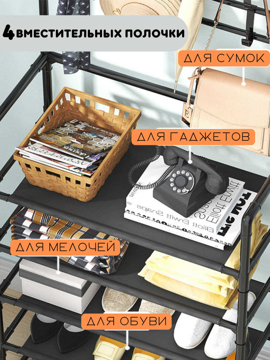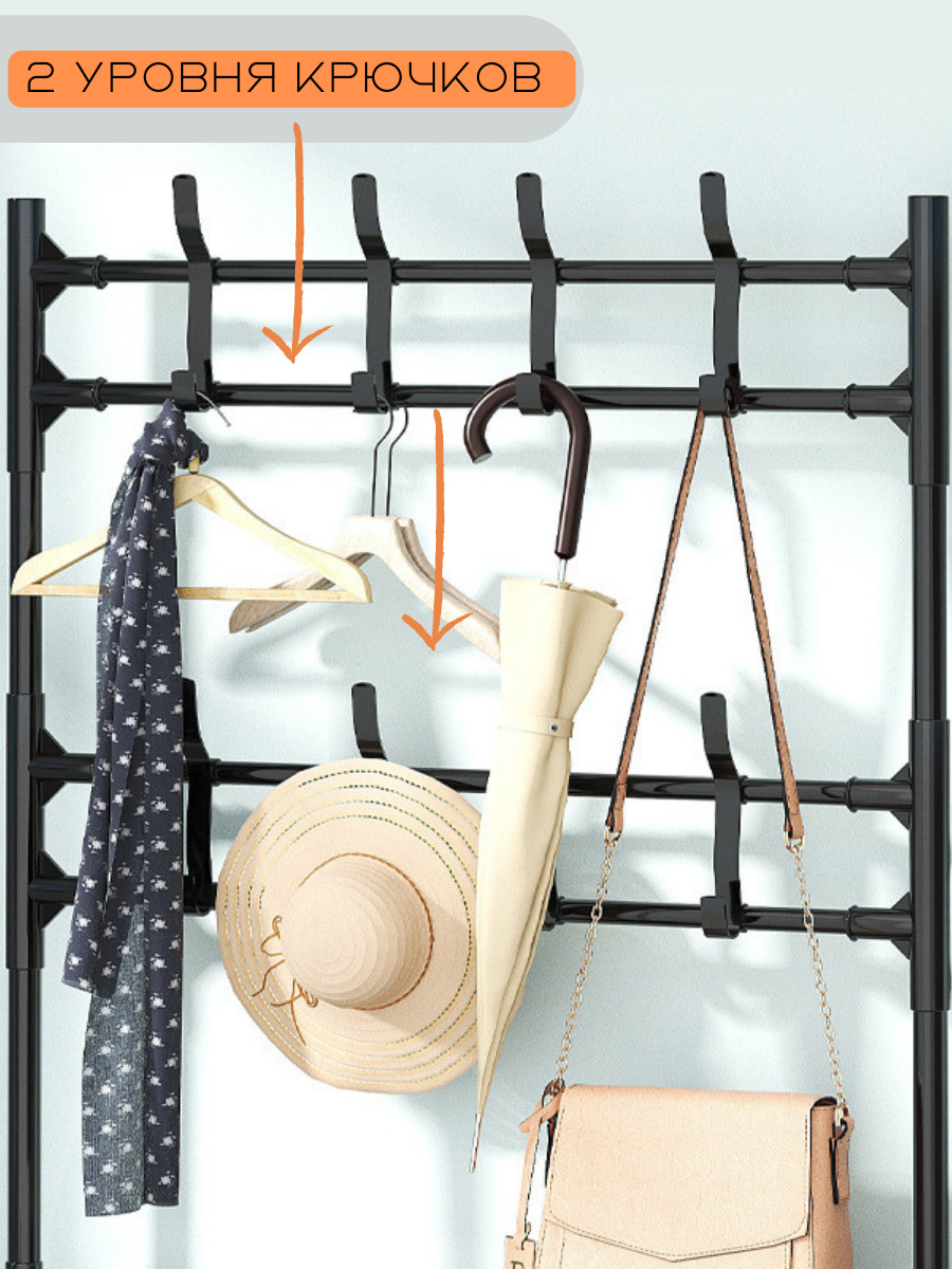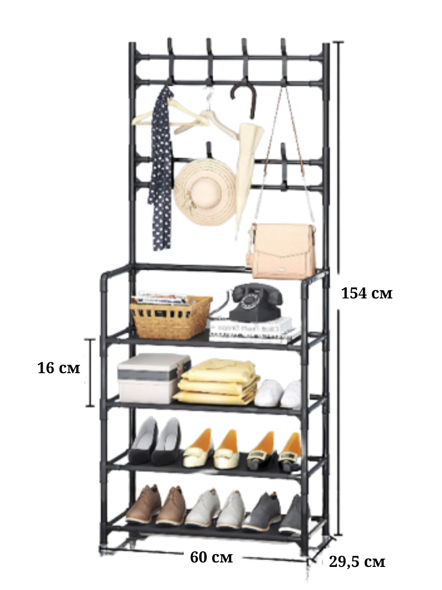 Напольная вешалка для хранения одежды и полками для обуви - это прекрасная альтернатива нагромождению в шкафах! С помощью сборной вешалки удобно хранить все самое необходимое перед выходом из дома или офиса. Напольную вешалку можно использовать в качестве