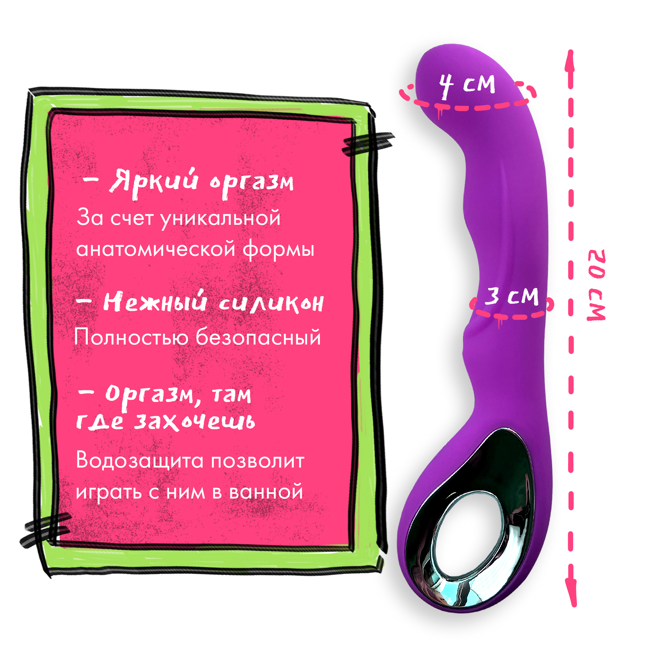 Особенности 18+Гипоаллергенно, Бархатистая поверхность, Водонепроницаемость, Для массажа простаты, Изогнутый