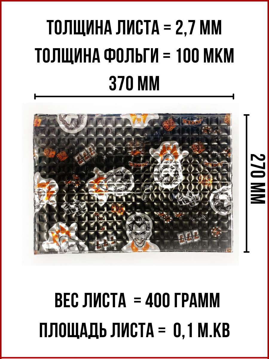 Виброизоляционный материал толщиной 2.7 ммВибропоглощающий материал для шумоизоляции автомобиля. Этот материал создан по уникальной технологии и является одним из самых востребованных материалов на рынке. Используется как 1 слой. На 2 слой необходимо испо