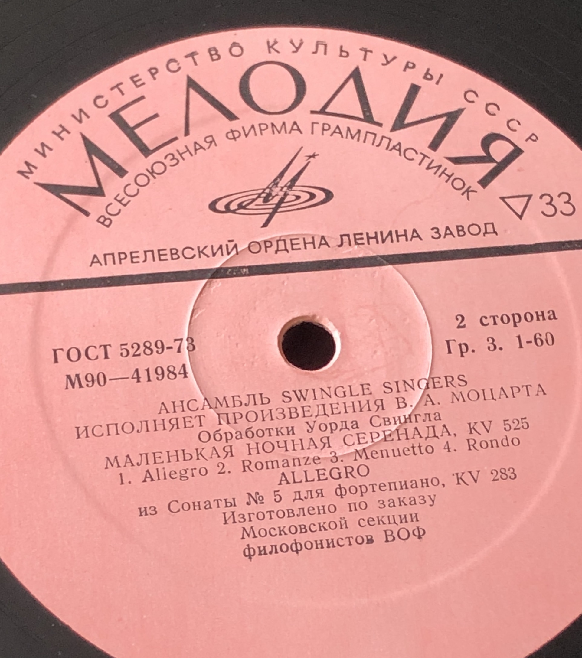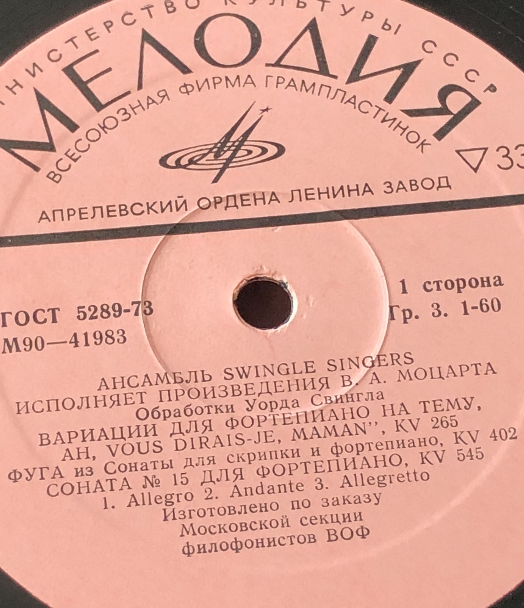 Виниловая пластинка Произведения В.А. Моцарта Исполняет Ансамбль Swingle Singers 300 мм