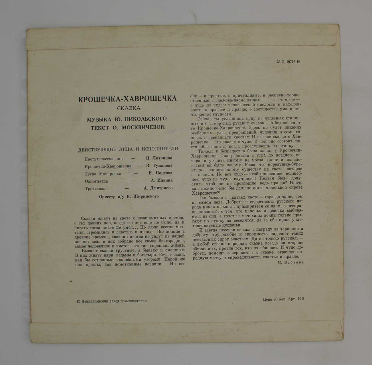 Комментарий:Хранение: вертикально в коробках. Конверт в защитной полиэтиленовой упаковке. Пластинка во внутреннем полиэтиленовом или бумажном конверте.
