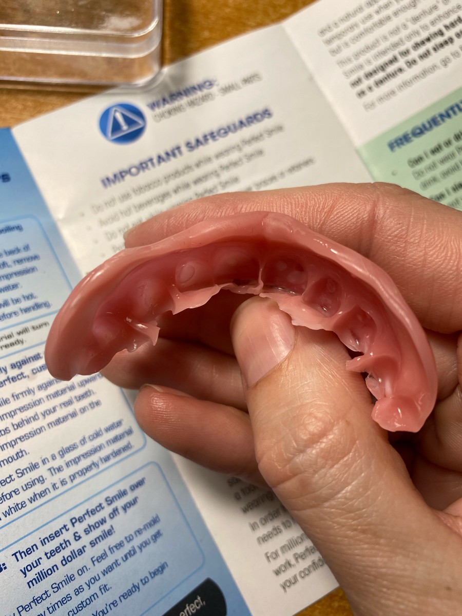 Виниры Perfect Smile Veneers изготовлены из надежного гипоаллергенного материала. Таким образом, изделие может использовать любой человек. Тыльная сторона выполнена из силикона, поэтому она особенно приятна, если ее касаться. Накладки прочно закрепляются