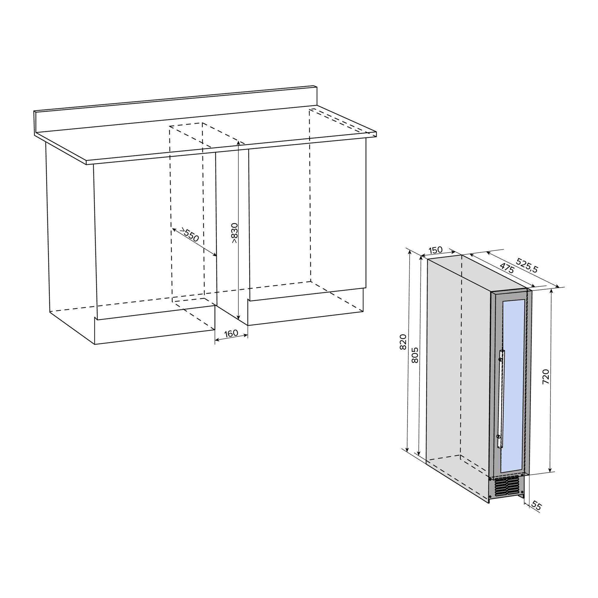 Размеры, мм (ШхГхВ)150 х 525 х 820