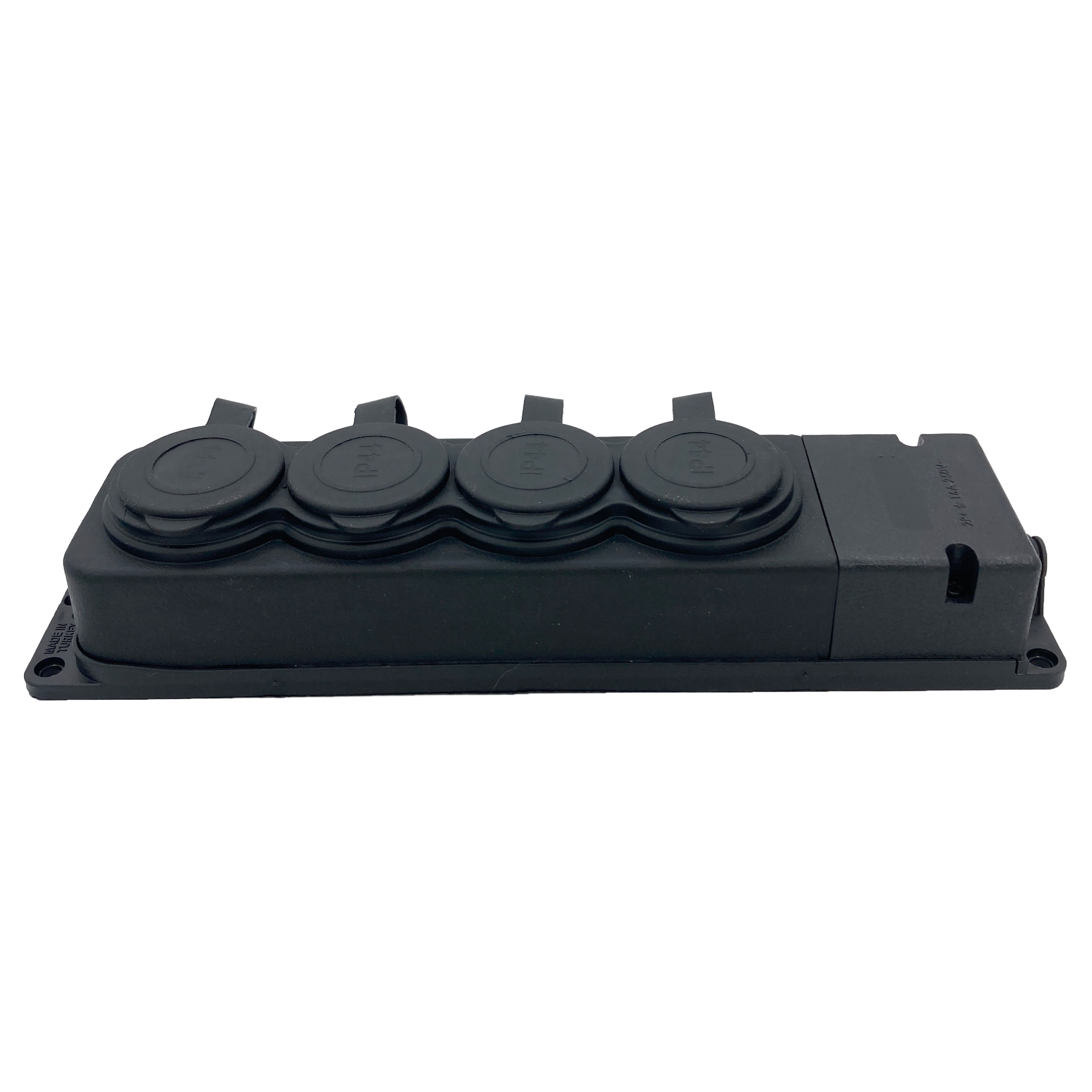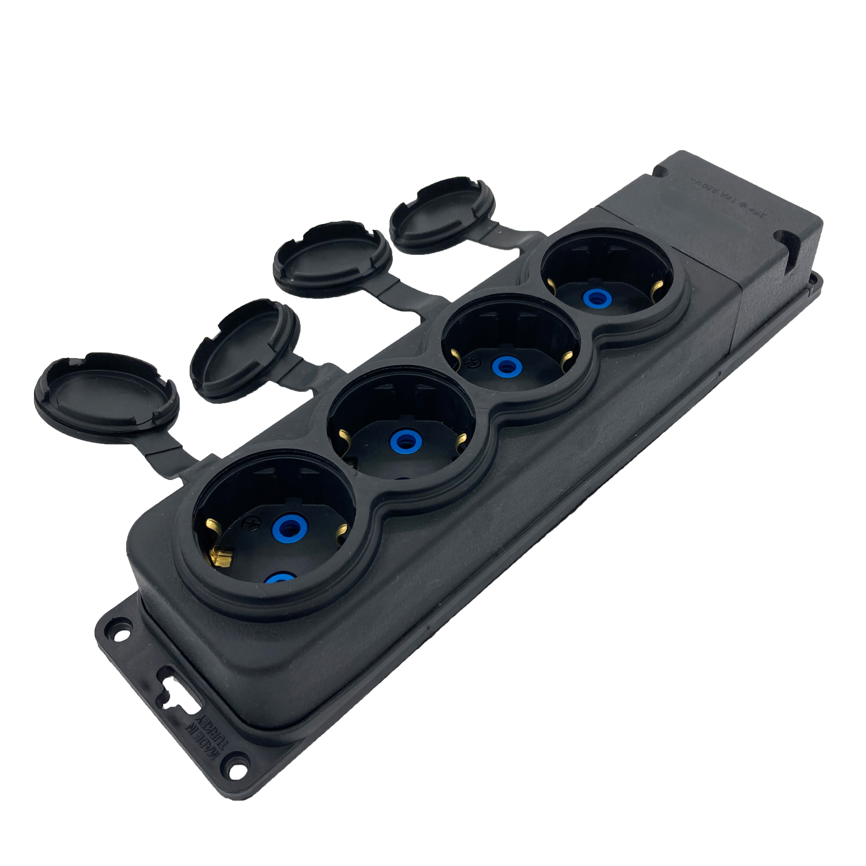 Комплектация:Розетка - 1 шт., упаковка.Описание:Накладная четырехместная электрическая розетка ЭЛЕКТРО из ароматизированного каучука подходит для работы в сложных эксплуатационных условиях, может использоваться на производствах, строительных объектах, в м