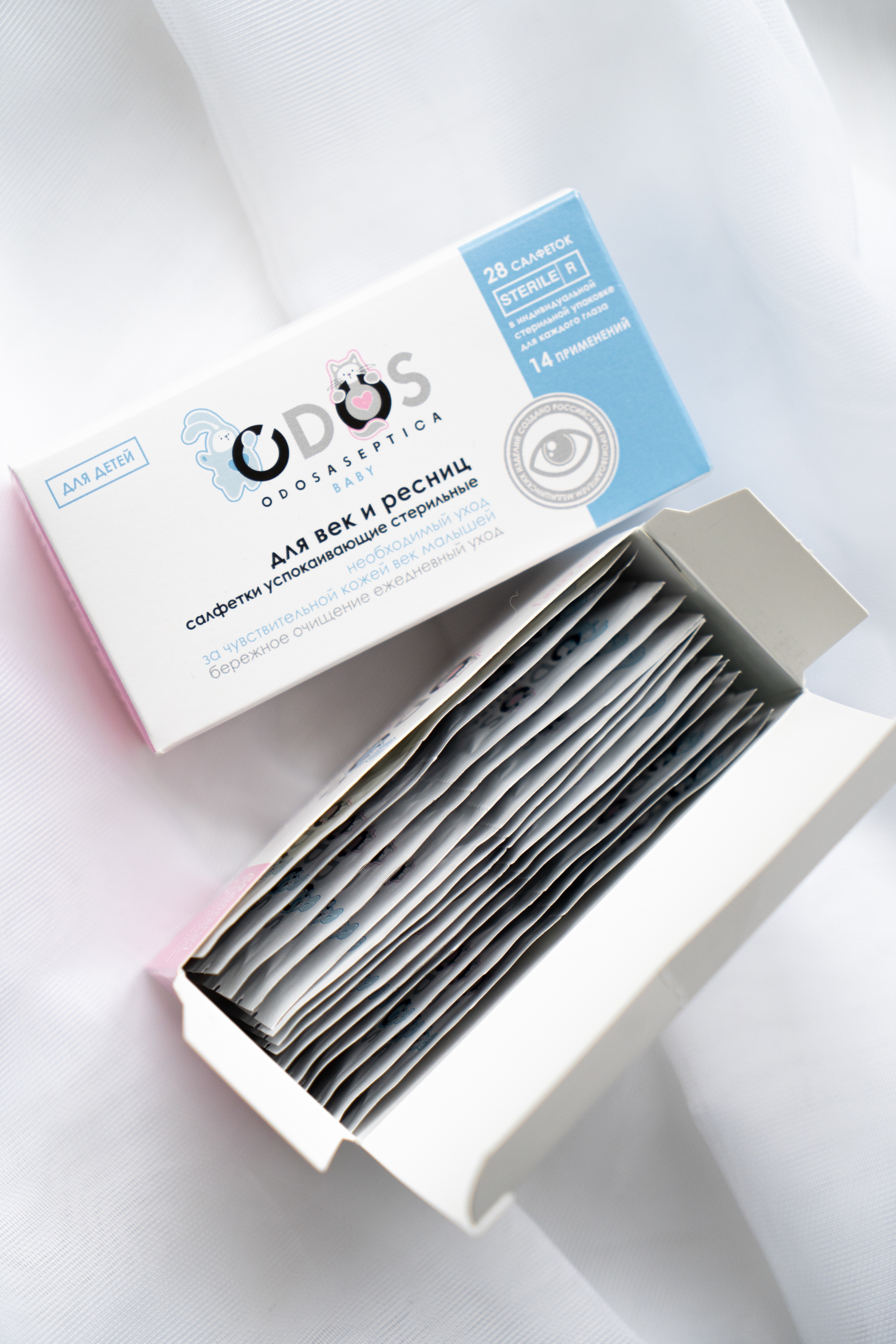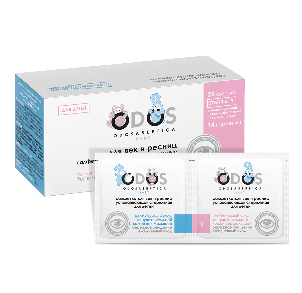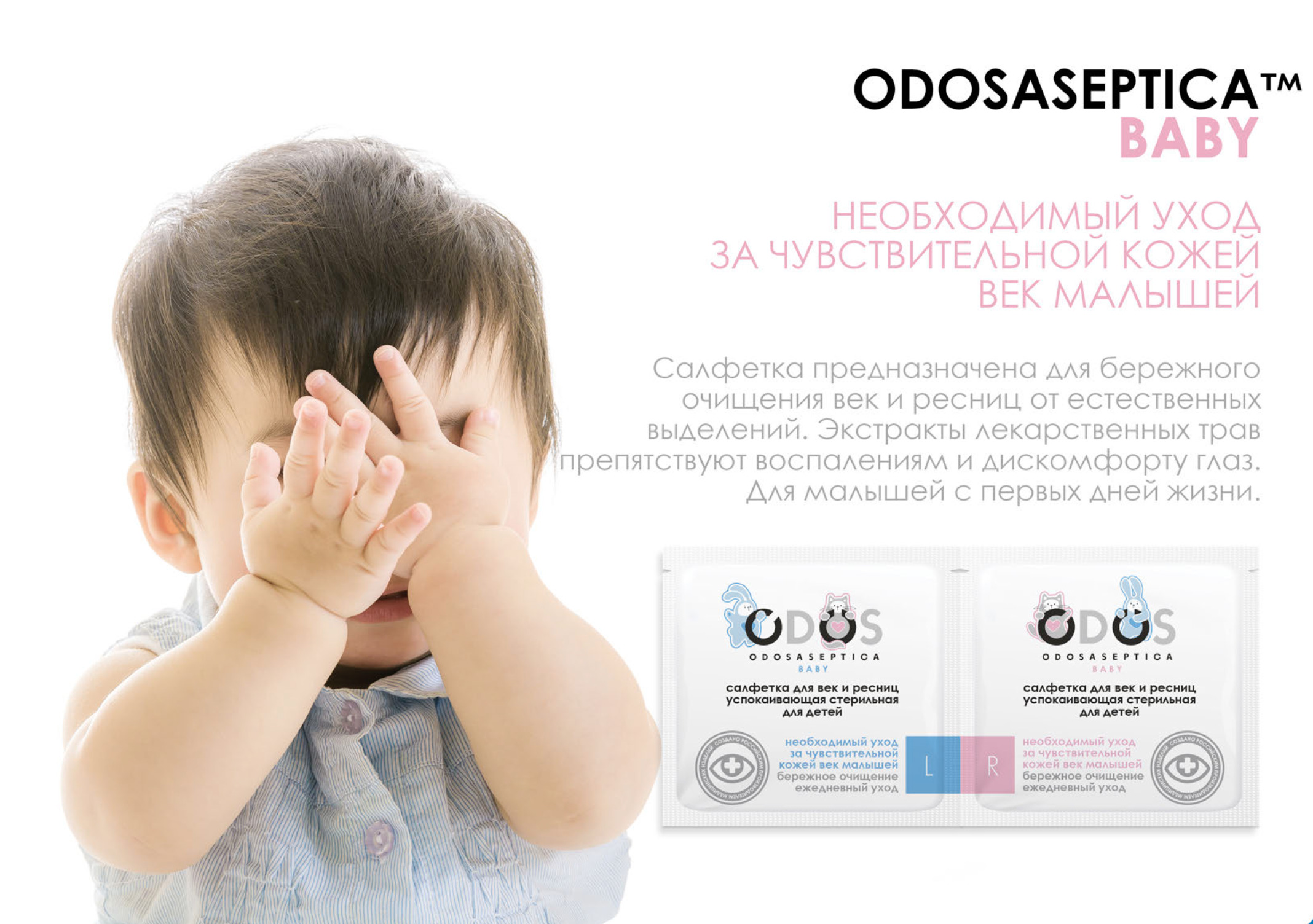 Влажные стерильные салфетки ODOSASEPTICA для детей и младенцев позволяют бережно очистить глаза от естественных глазных выделений, загрязнений и мелких инородных частиц на веках и ресницах.Состав пропитки влажных детских салфеток ODOSASEPTICA адаптирован