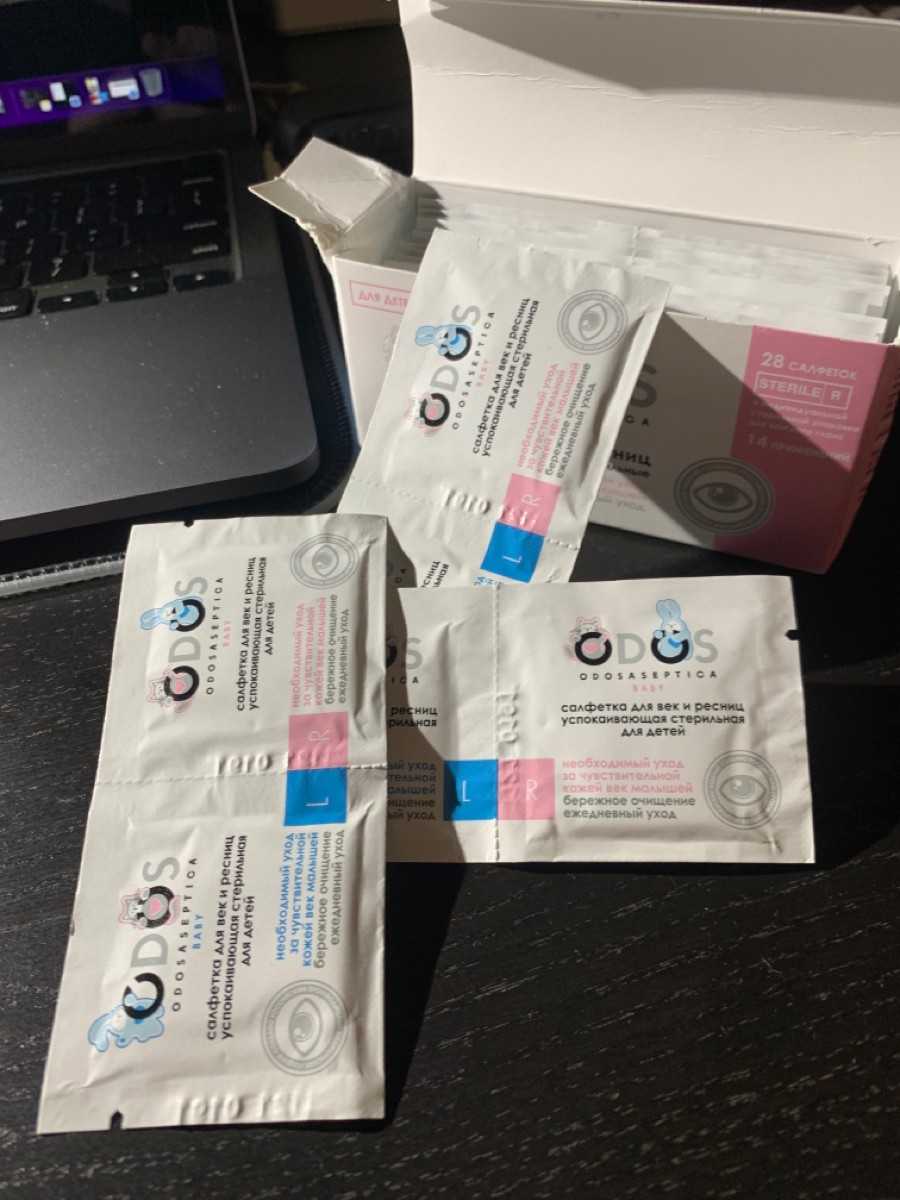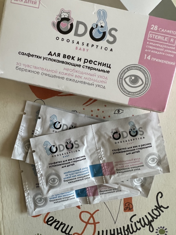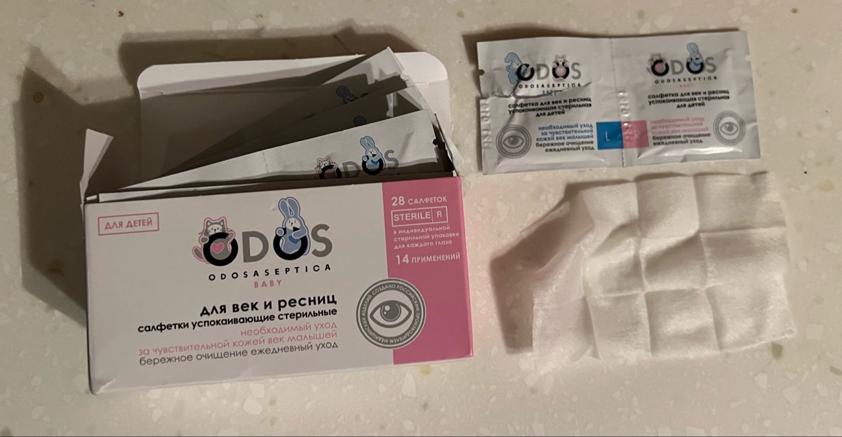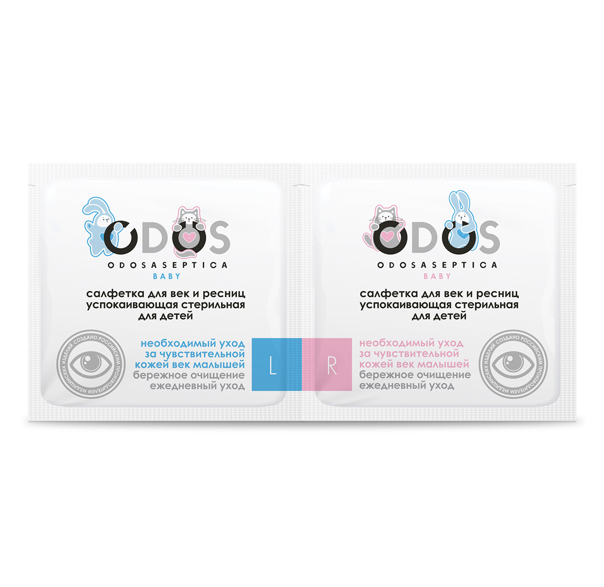 Влажные стерильные салфетки ODOSASEPTICA для детей и младенцев позволяют бережно очистить глаза от естественных глазных выделений, загрязнений и мелких инородных частиц на веках и ресницах.Состав пропитки влажных детских салфеток ODOSASEPTICA адаптирован