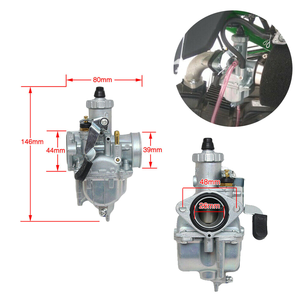 Карбюратор VM22 26 мм Карбюратор Power Jet для карбюратора Mikuni 110 куб. См 125 куб. См 140 куб. сторона: внутренний диаметр 34 мм, внешний диаметр 39 мм. Сторона двигателя: внутренний диаметр 26 мм, внешний диаметр 44 мм. Расстояние между двумя устан