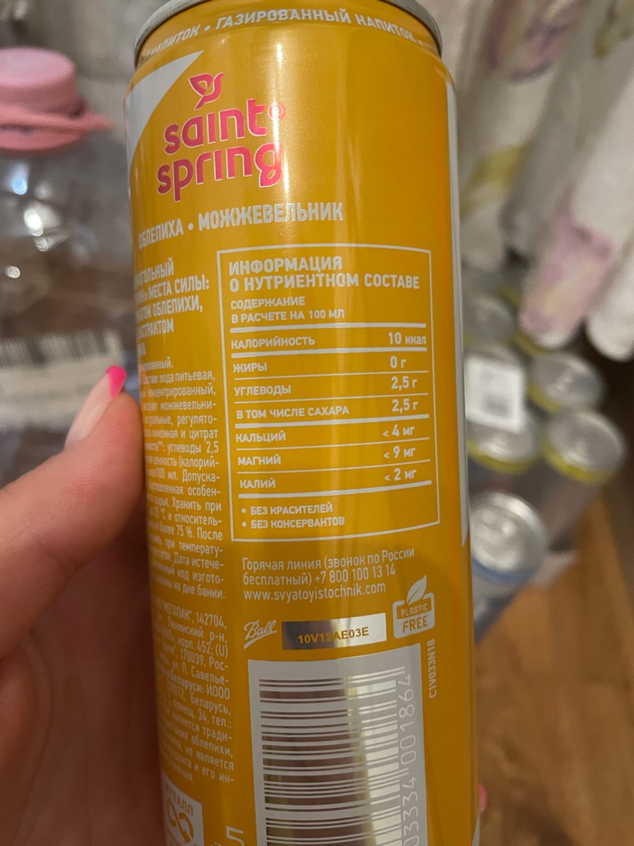 Условия хранения:Хранить при температуре от 0 ᵒС до 25 ᵒС и относительной влажности воздуха не более 75 %Состав средства:вода питьевая, ароматизаторы, экстракт можжевельникаОписание:Безалкогольный среднегазированный напиток «Святой Источник «Места Силы» н
