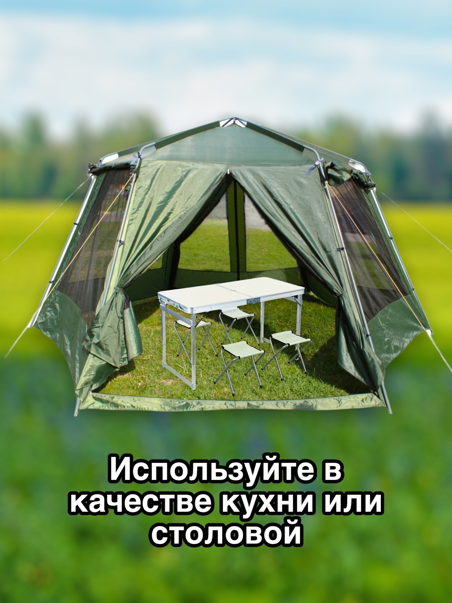 Большой москитный шатер без пола, палатка кухня беседка на 5-8 человек для отдыха на природе и дачи в летнее время.Двухслойная беседка-шатер / кухня-палатка крепится на железный каркас, что придает жесткость конструкции для удобного использования на приро