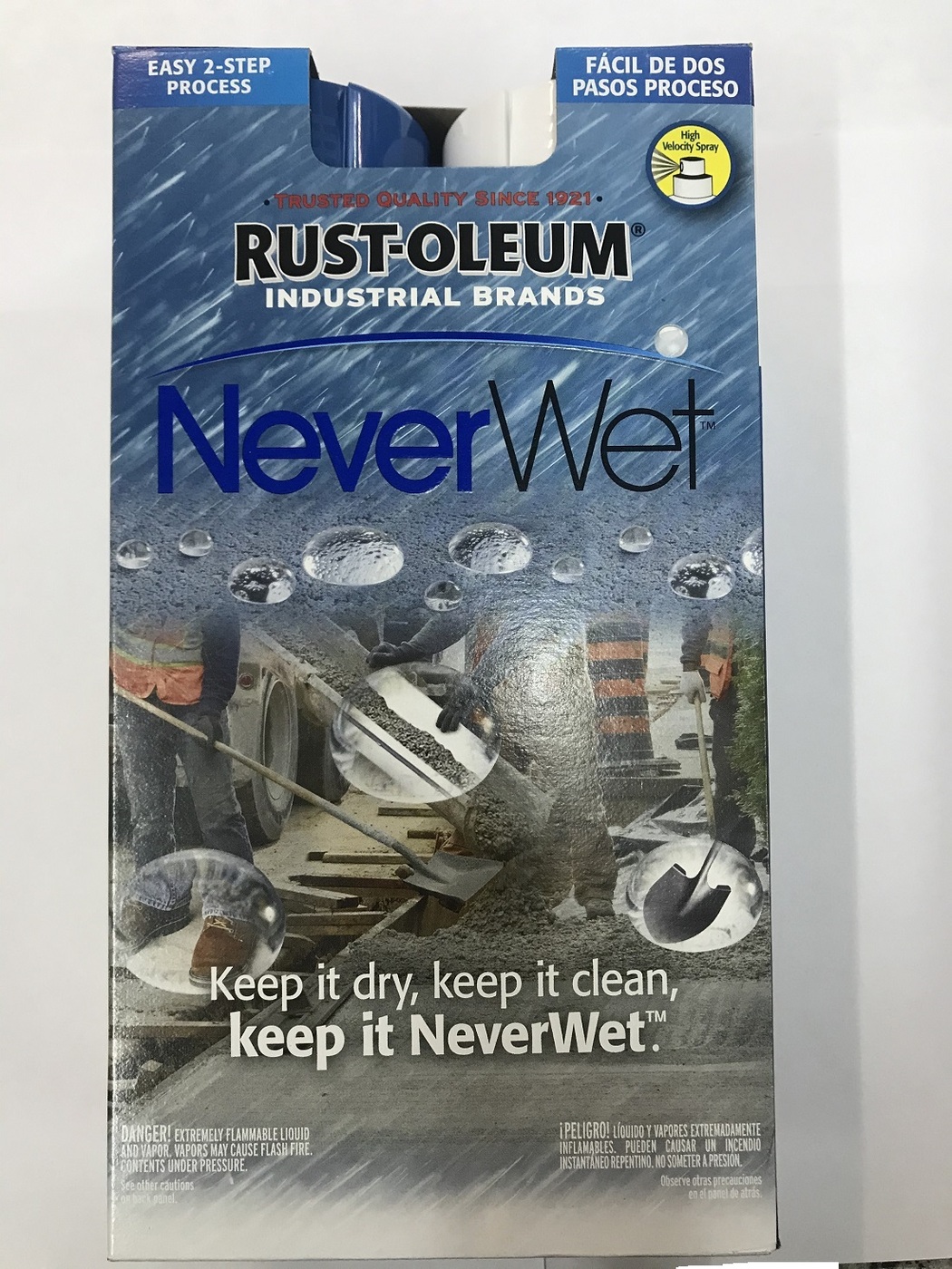 RUST-OLEUM INDUSTRIAL BRANDS NEVERWET® AEROSOL - двухкомпонентное защитное супергидрофобное покрытие для создания водоотталкивающего барьера на поверхности.ХАРАКТЕРИСТИКИ МАТЕРИАЛА:обладает супергидрофобными свойствами по сравнению с традиционными гидрофо