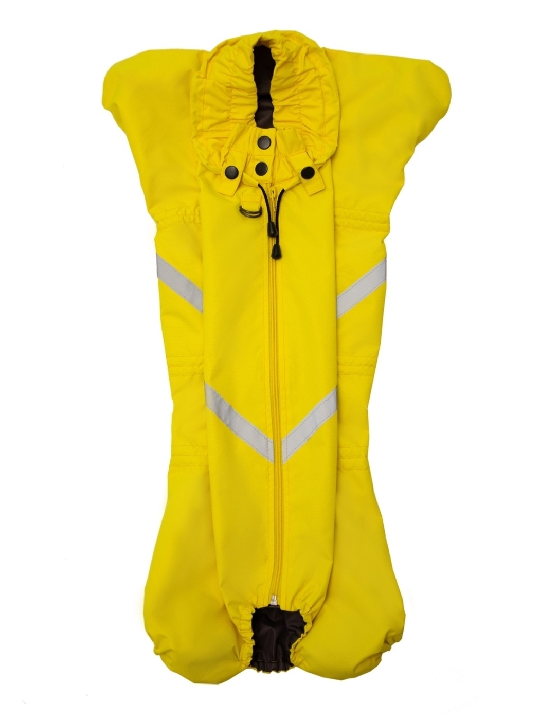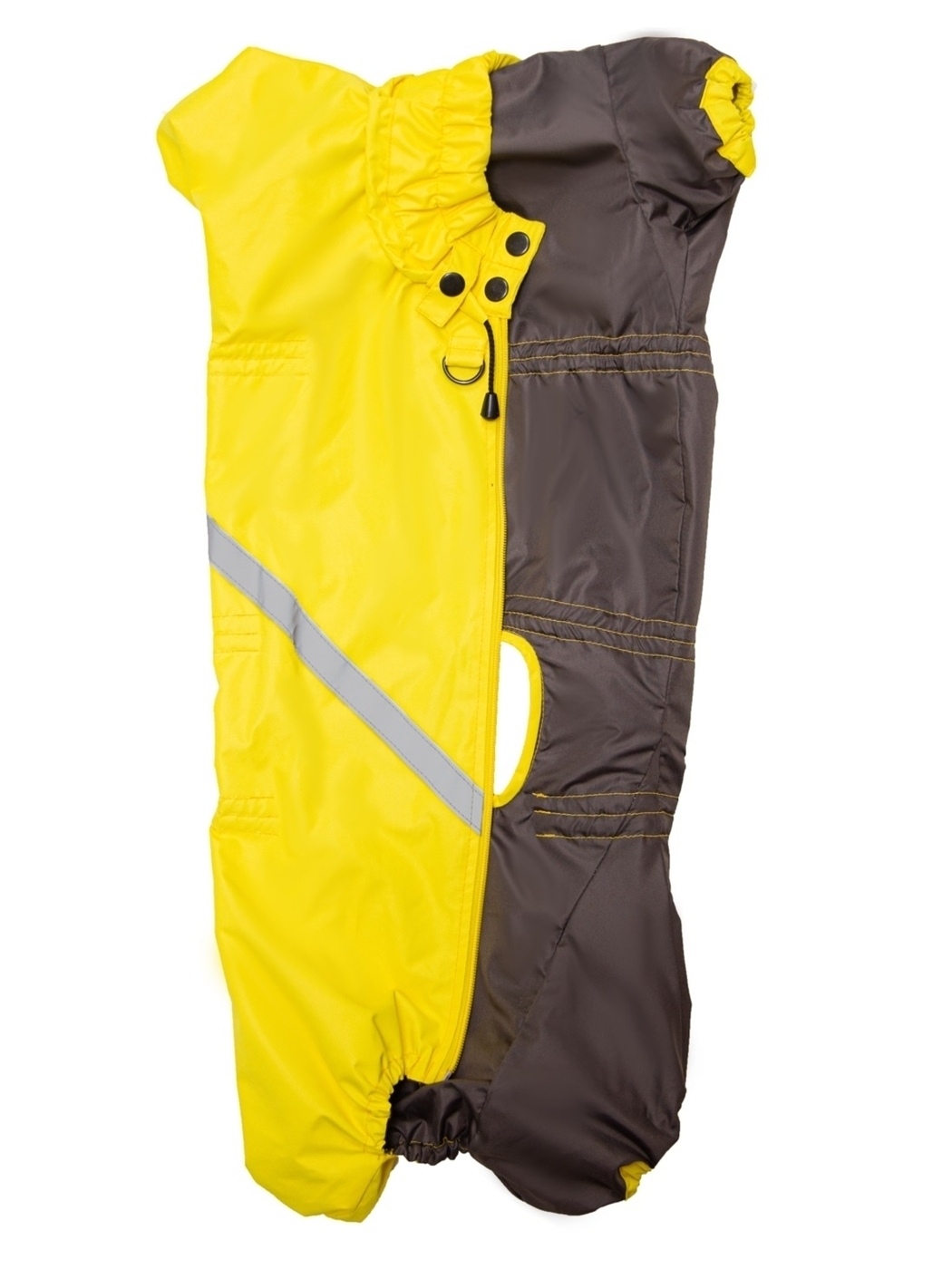 Мембранный материал с показателем водоупроности 5000 г/м3 с двойной водонепроницаемой пропиткой позволят вам даже после двухчасовой прогулки в дождливый день забыть про мытье и сушку вашего любимца. Дождевик имеет 4 элемента регулировки объемов (в груди,