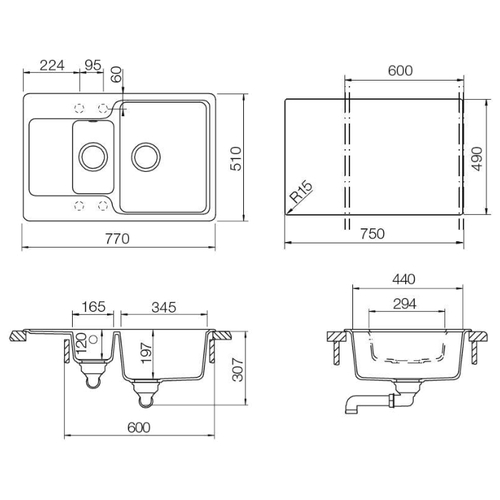 Размер монтажного отверстия под мойку (ШхГ)75x49 см