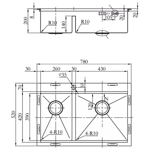 Размеры мойки (ДхШ)78х52 см
