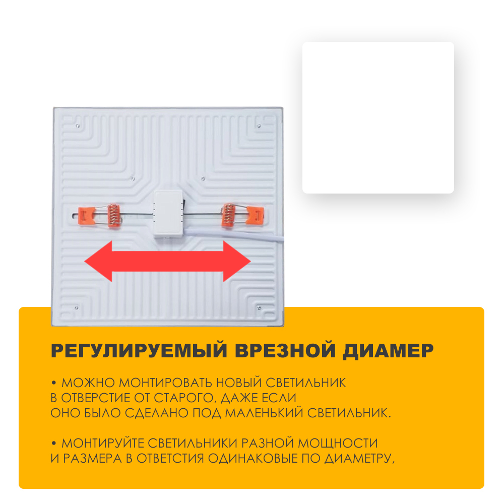 Безрамочная LED-панель с заливкой светом на 180 градусов и регулируемым врезным диаметром.Алюминиевое основание с радиатором - отлично справляется с отводом тепла, тем самым увеличивает срок службы.Заливка светом на 180 градусов - LED-панель не имеет рамо