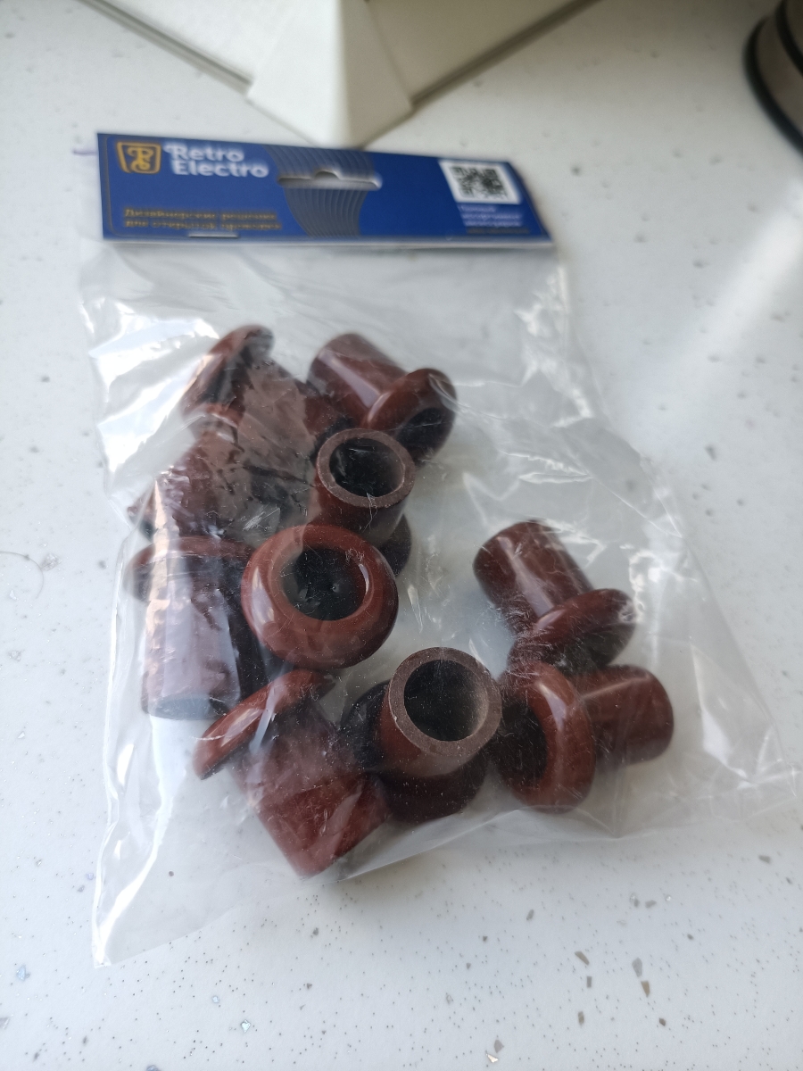 Втулка проходная, коричневая, RetroElectro, керамическая, 10 штук в комплекте. Изделие предназначено для прохода через стену витых электрических проводов. Элемент оформления открытой дизайнерской электрики без необходимости "прятать в стену". Легко и быст
