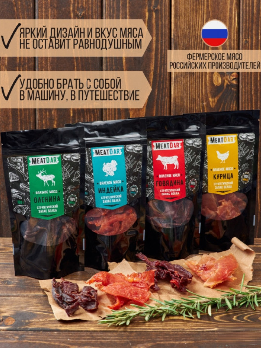 Оригинальный подарочный набор для мужчин из вяленого мяса от MeatDar. Шикарный подарок любимому мужчине, дедушке, папе на 23 февраля, день рождения в красивой упаковке. Идеальная мясная закуска к пиву, к вину и выдержанным напиткам. В подарочный набор вхо