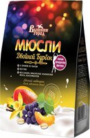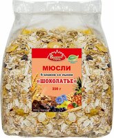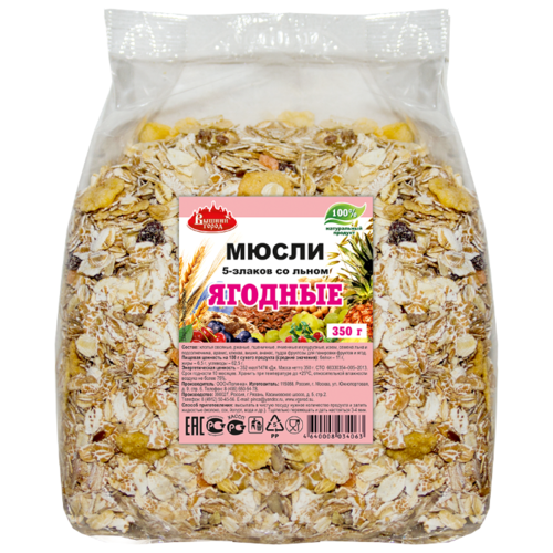 Составхлопья овсяные, шоколадные гранулы (сахар, сухое цельное молоко, масло- какао, тертое какао, эмульгатор, лецитин, ароматизатор "Ванилин"), клюква красная, семя льна