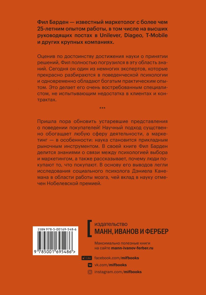 Внимание: эта книга изменит ваши представления о маркетинге раз и навсегда.Фил Барден — маркетер с 25-летним стажем — рассказывает о совершенно новом подходе к маркетингу. Новый подход основан на четких научных данных и результатах исследований, которые к