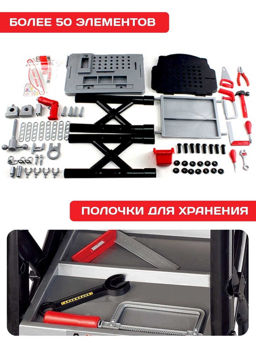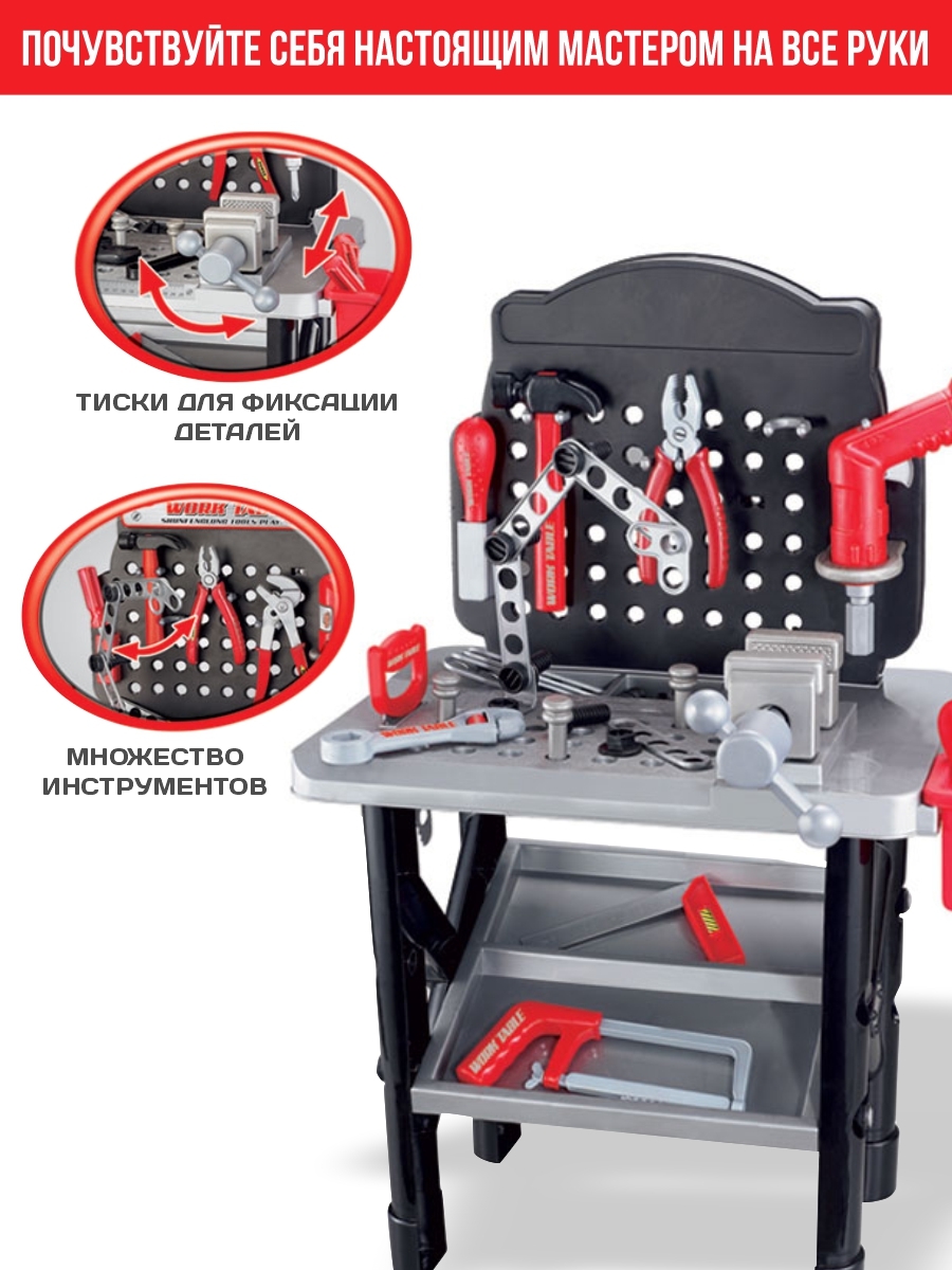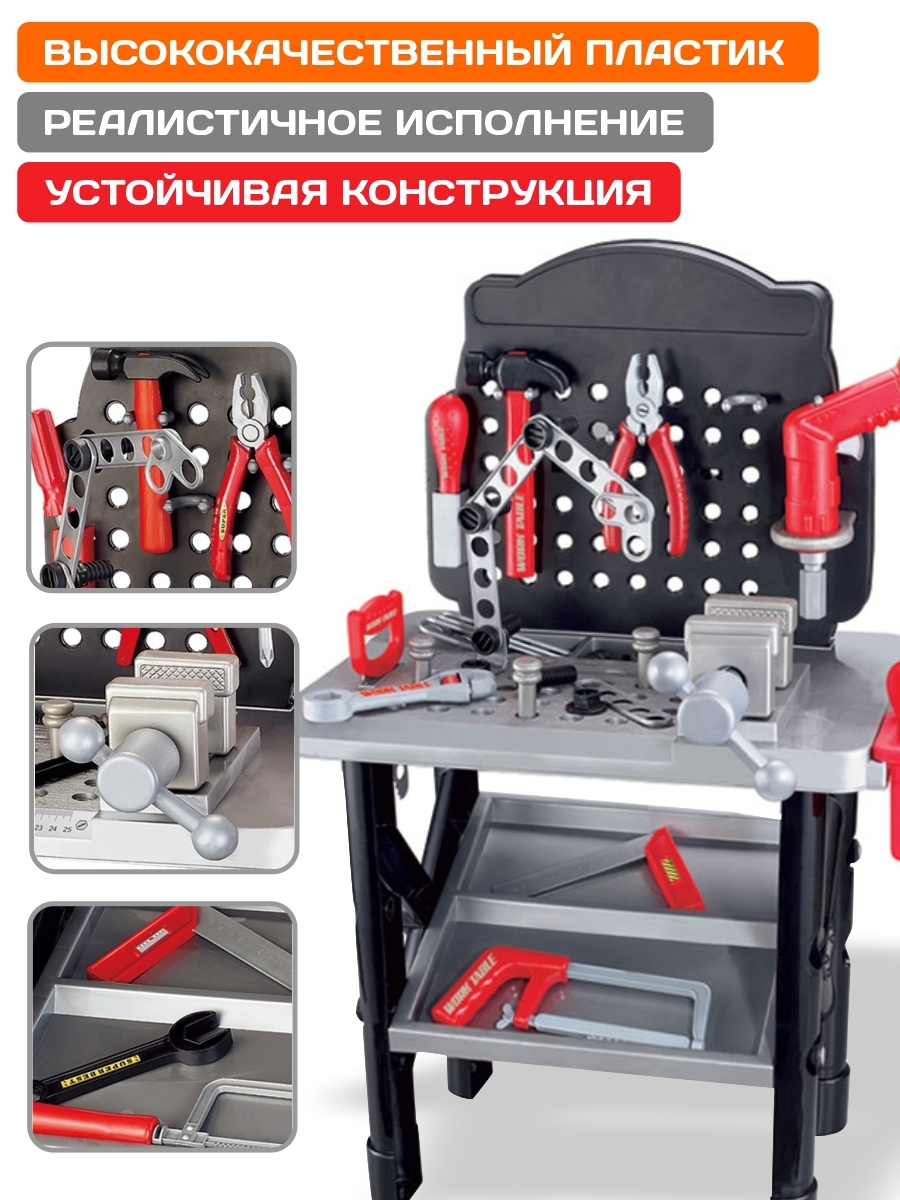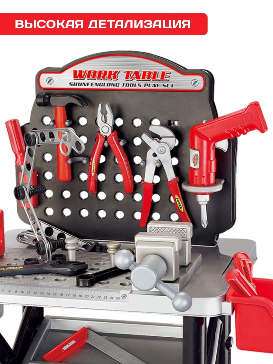 Игровой набор инструментов поможет вашему малышу скорее научиться помогать папе или дедушке. Этот набор превосходно подходит для маленького мастера и игры в мастерскую. В набор входит дрель с батарейным питанием. Все инструменты выглядит и функционируют к