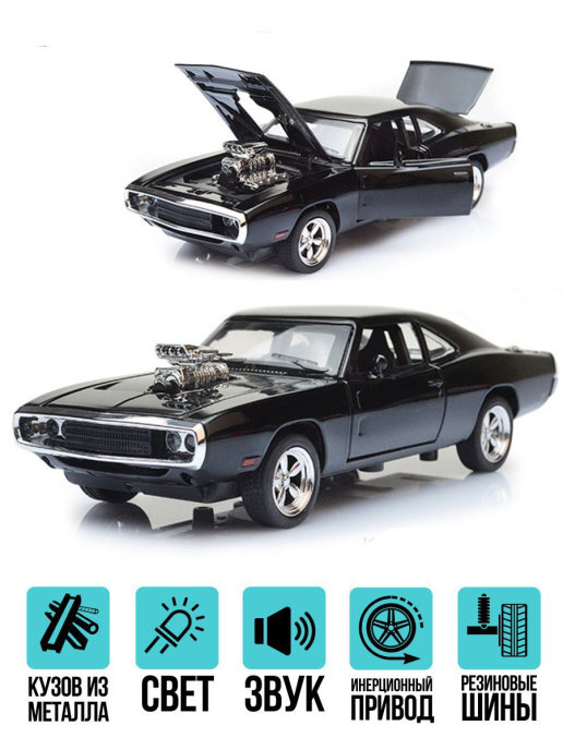 Металлическая машинка Dodge Charger RT станет жемчужиной вашей коллекции. Модель изготовлена в масштабе 1:32 и точно детализирована. Высококачественный сплав металлов, резина и пластик придают модели дорогой и благородный вид. В интерактивной машинке отк