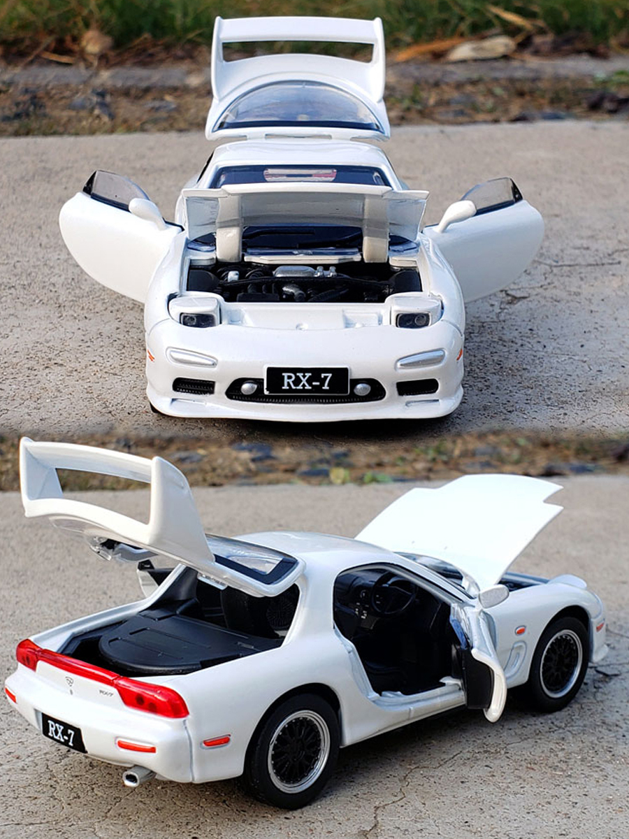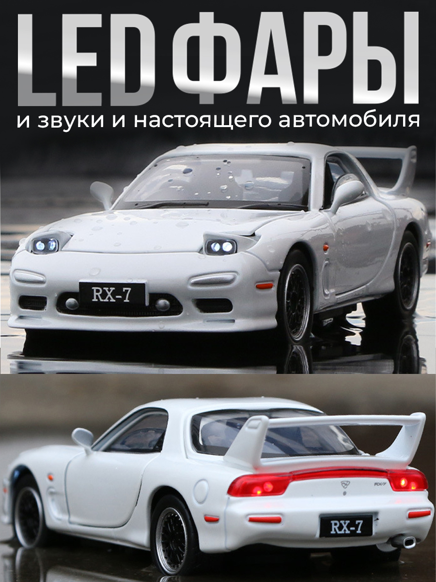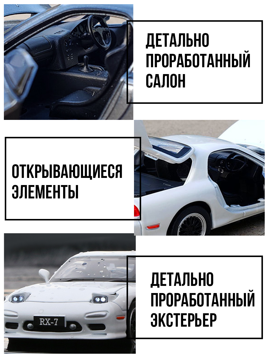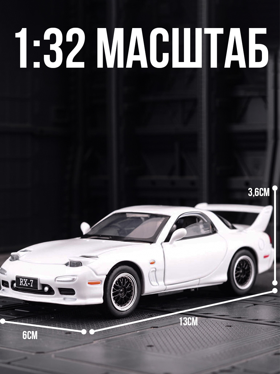 Коллекционная машинка Mazda RX-7 отлично дополнит вашу коллекцию. Модель изготовлена в масштабе 1:32 и точно детализирована. Высококачественный сплав металлов, резина и пластик придают модели дорогой и благородный вид. В интерактивной машинке открываются
