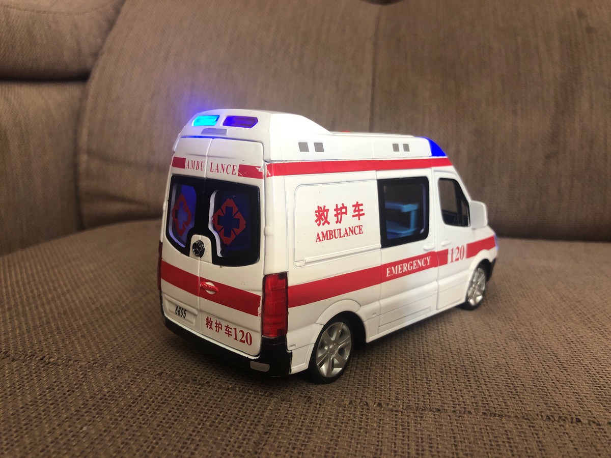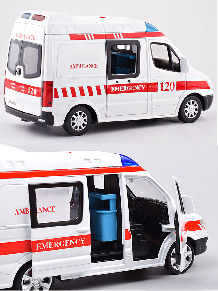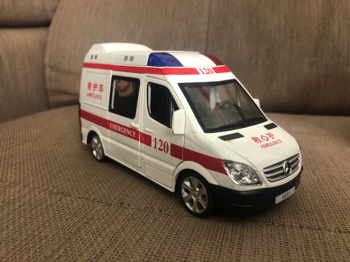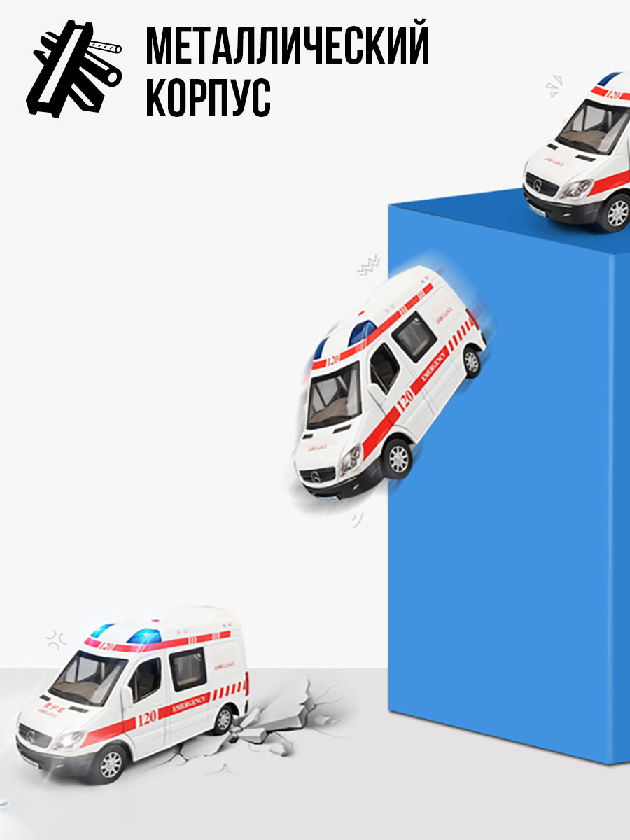 Машина скорой помощи отлично дополнит вашу коллекцию. Модель изготовлена в масштабе 1:32 и точно детализирована. Высококачественный сплав металлов, резина и пластик придают модели дорогой и благородный вид. В интерактивной машинке открываются двери, крутя