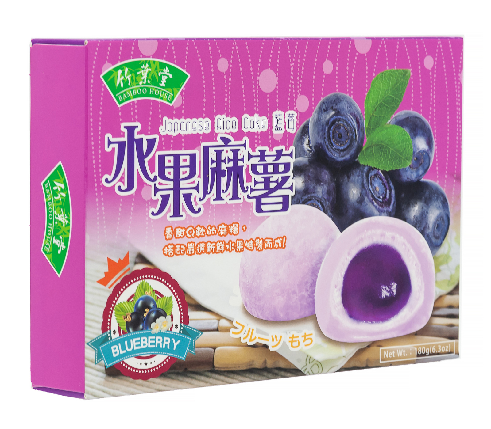 Моти с джемом из голубики.Японский десерт Моти - это шарики из рисового теста с начинкой внутри. Делается из истолчённого в пасту клейкого риса, который при долгом толчении и смачивании приобретает сладкий вкус. Моти - это традиционное японское лакомство,