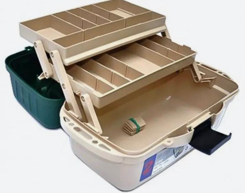 Ящик рыболовный в форме чемоданчика для приманок и снастей. Ящик с двумя ярусами. Популярный формат хранения рыболовных принадлежностей. Полная защита от коррозии за счёт отказа от металлических комплектующих. Защита от осадков, плотная и крепкая крышка.Я
