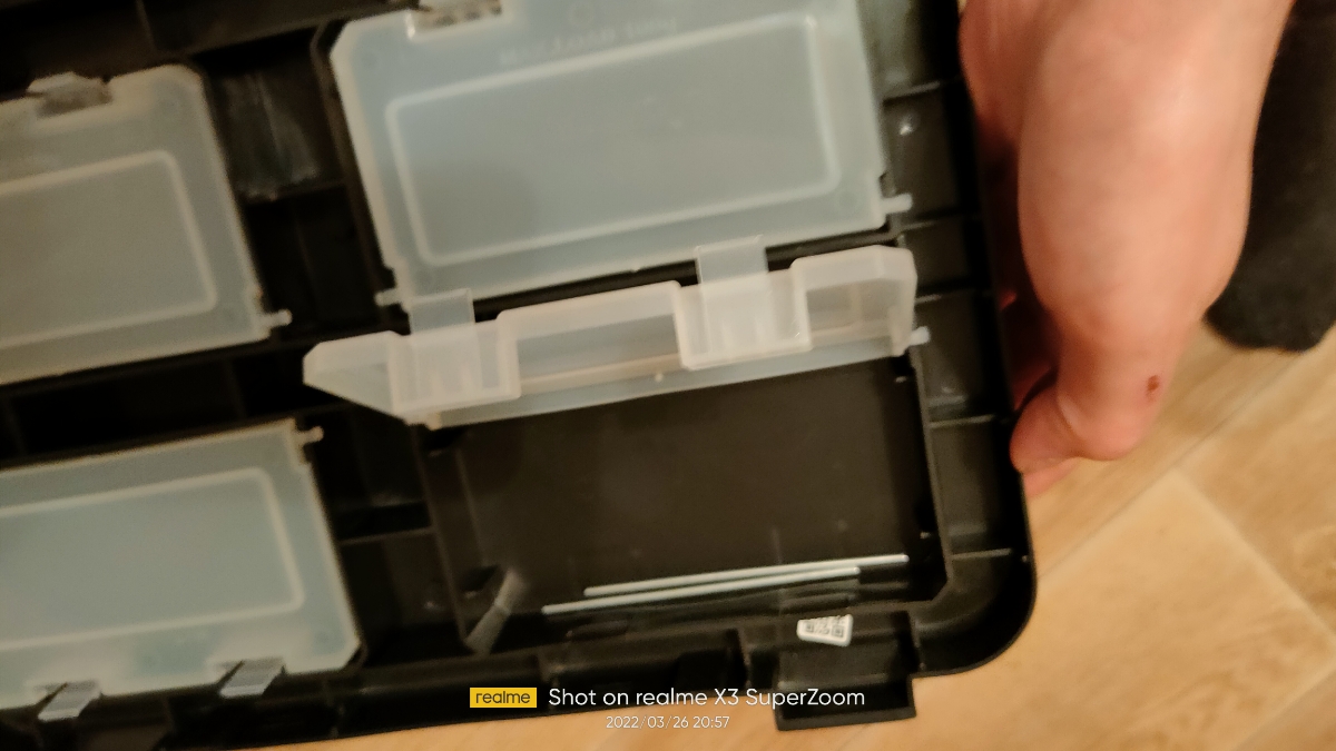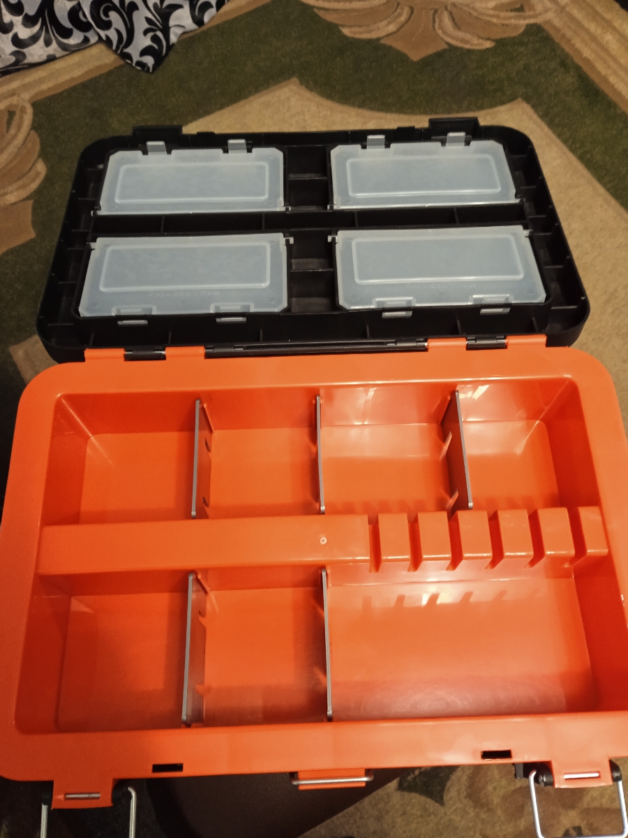 Особенности емкостей для храненияОрганайзер для принадлежностей, Жесткая конструкция, Жесткое дно, Замок, Наплечный ремень, Переставные перегородки