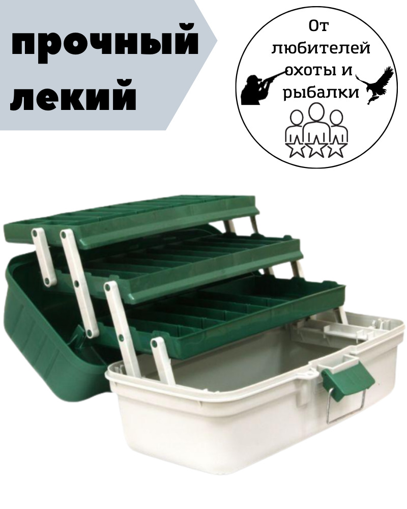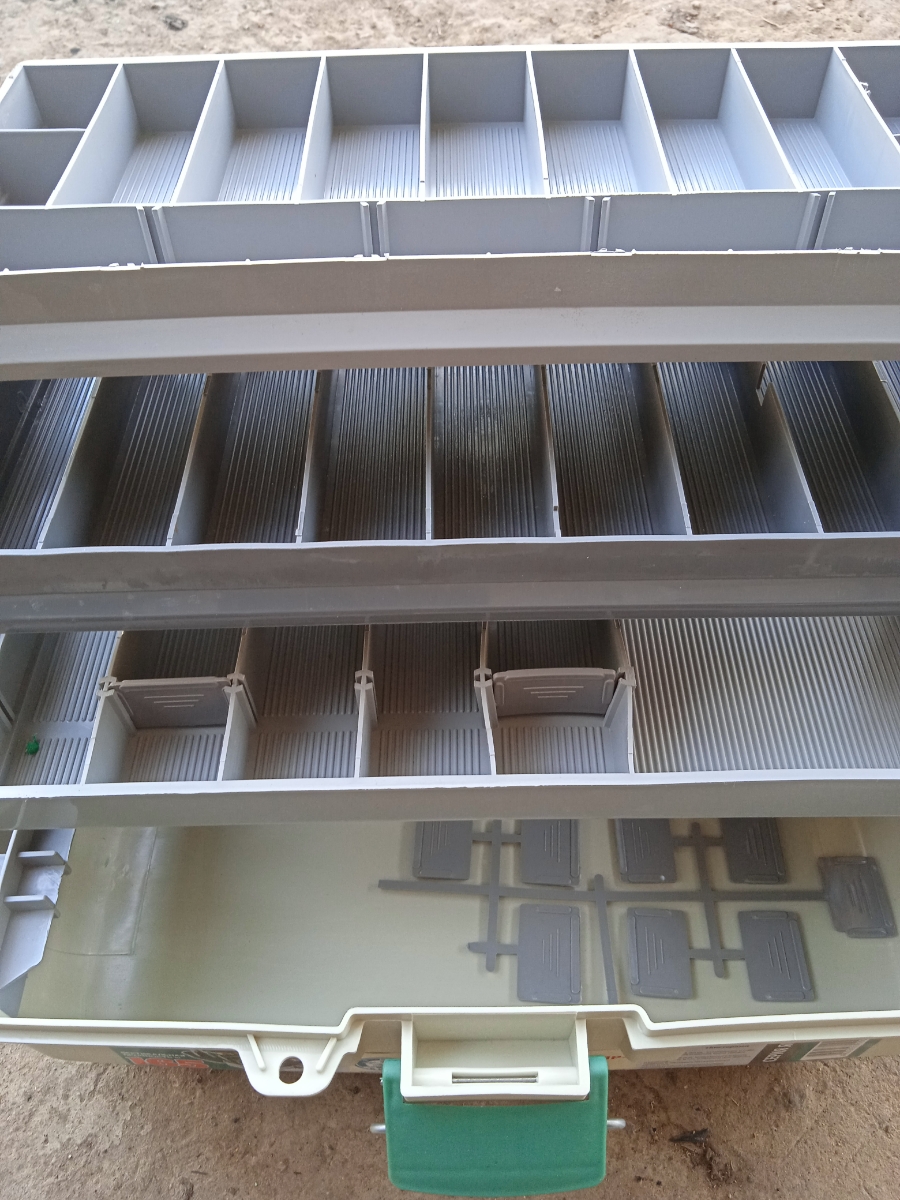 Ящик обладает 24-34 отсеками. Имеются в комплекте дополнительные детали, чтобы сделать ещё несколько отсеков. Ящик рыболовный для снастей летний 3 яруса. Множество отсеков поможет аккуратно сложить большое количество рыболовных принадлежностей и не даст з