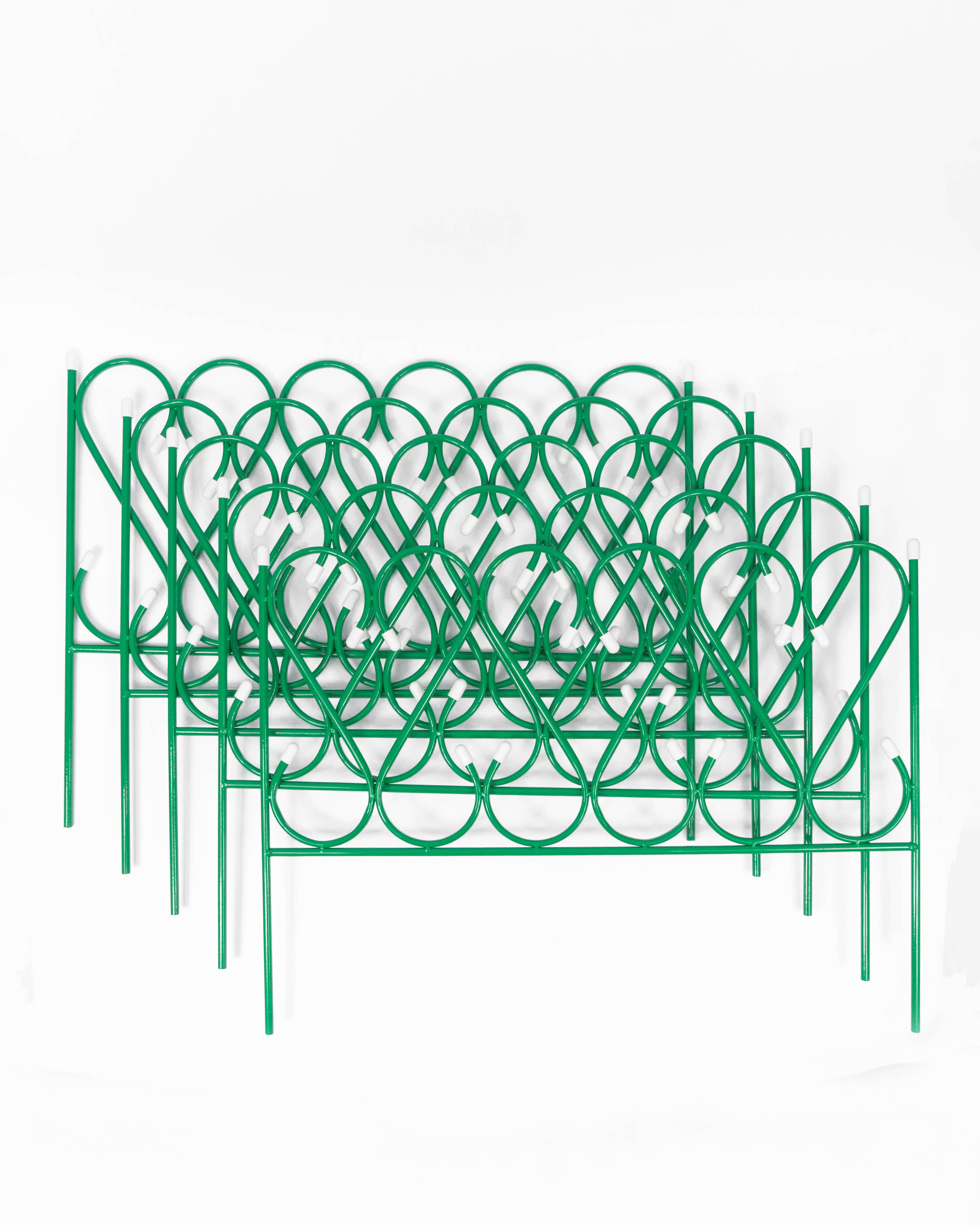 Комплектация:Секции заборчика - 5 шт.Описание:Заборчик декоративный для сада.Размеры одной секции: 670 х 510 х 10 мм.В комплект входит 5 секций.Общий размер 3.35 м.Заборчик изготовлен из стальной трубы, толщиной 0,8 мм и покрыт антикоррозийной краской выс