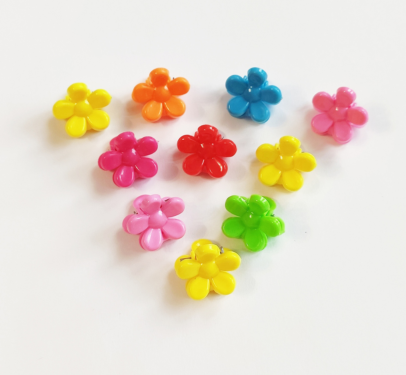 Разноцветные заколочки крабы цветочки. Яркие и удобные заколочки будут радовать юную модницу каждый день.Размер крабика 0,7х0,7 см.Комплектация:35 заколок-крабиков