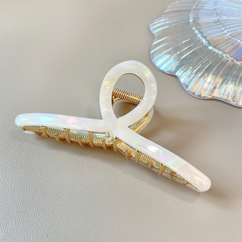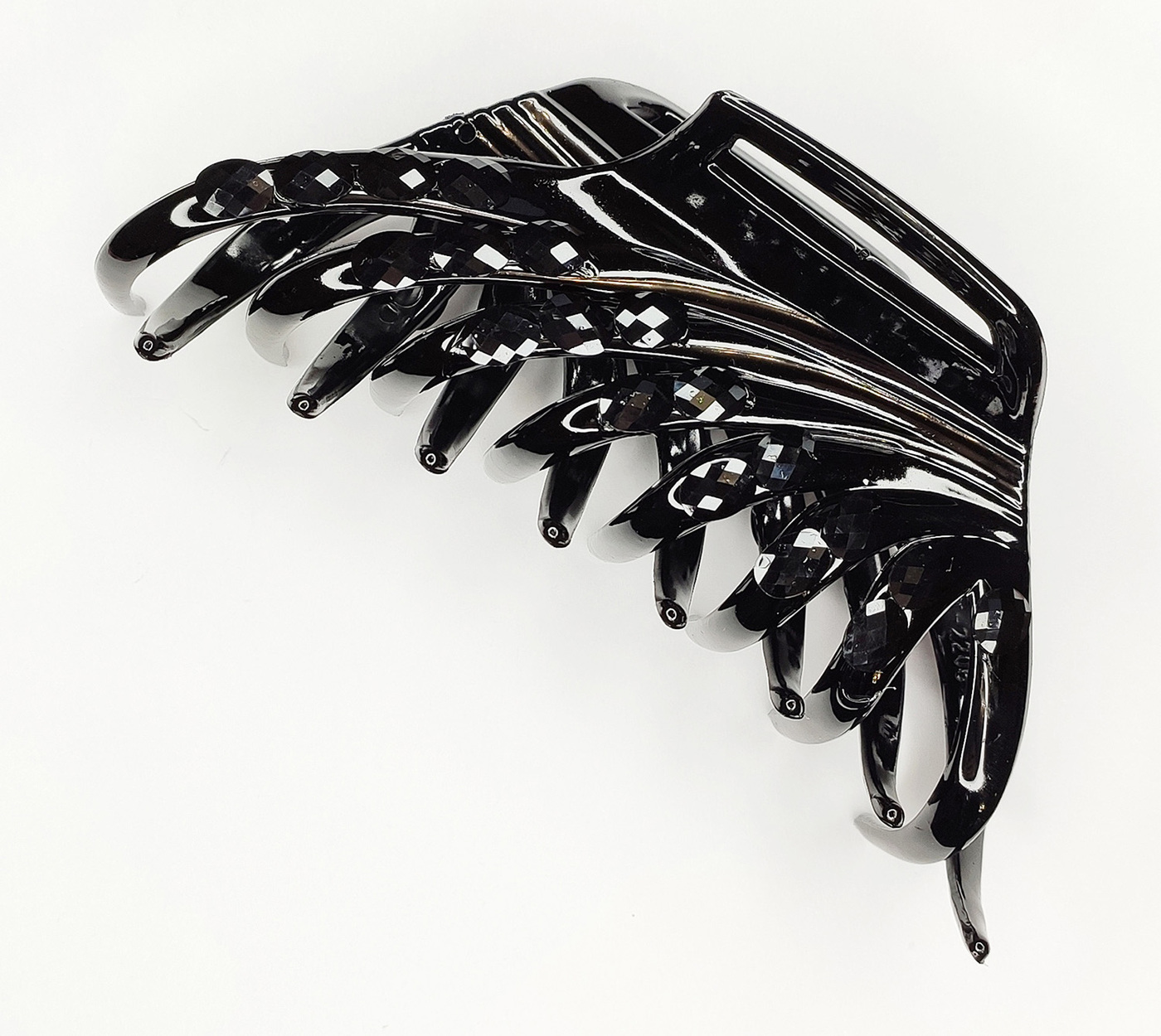 Легкая и практичная заколка-краб декорированная шелковистой лентой. 12 зубчиков с закругленными краями надежно фиксируют пряди волос.