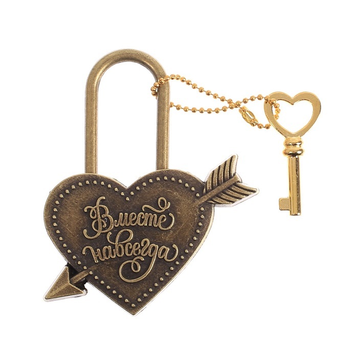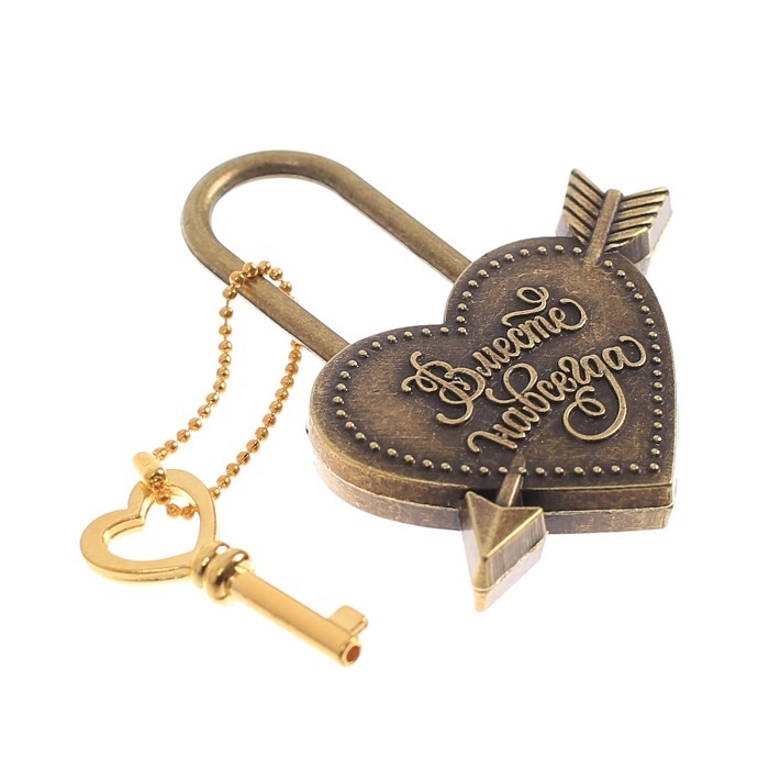 Свадебный замочек с ключиком / Замок / Замочек / Декоративный замочек /Замочек для молодоженов «Вместе навсегда» с золотым ключом изготовлен из металла в бронзовом оттенке, поэтому отлично подойдет для тематической церемонии в винтажном стиле. Лицевая сто