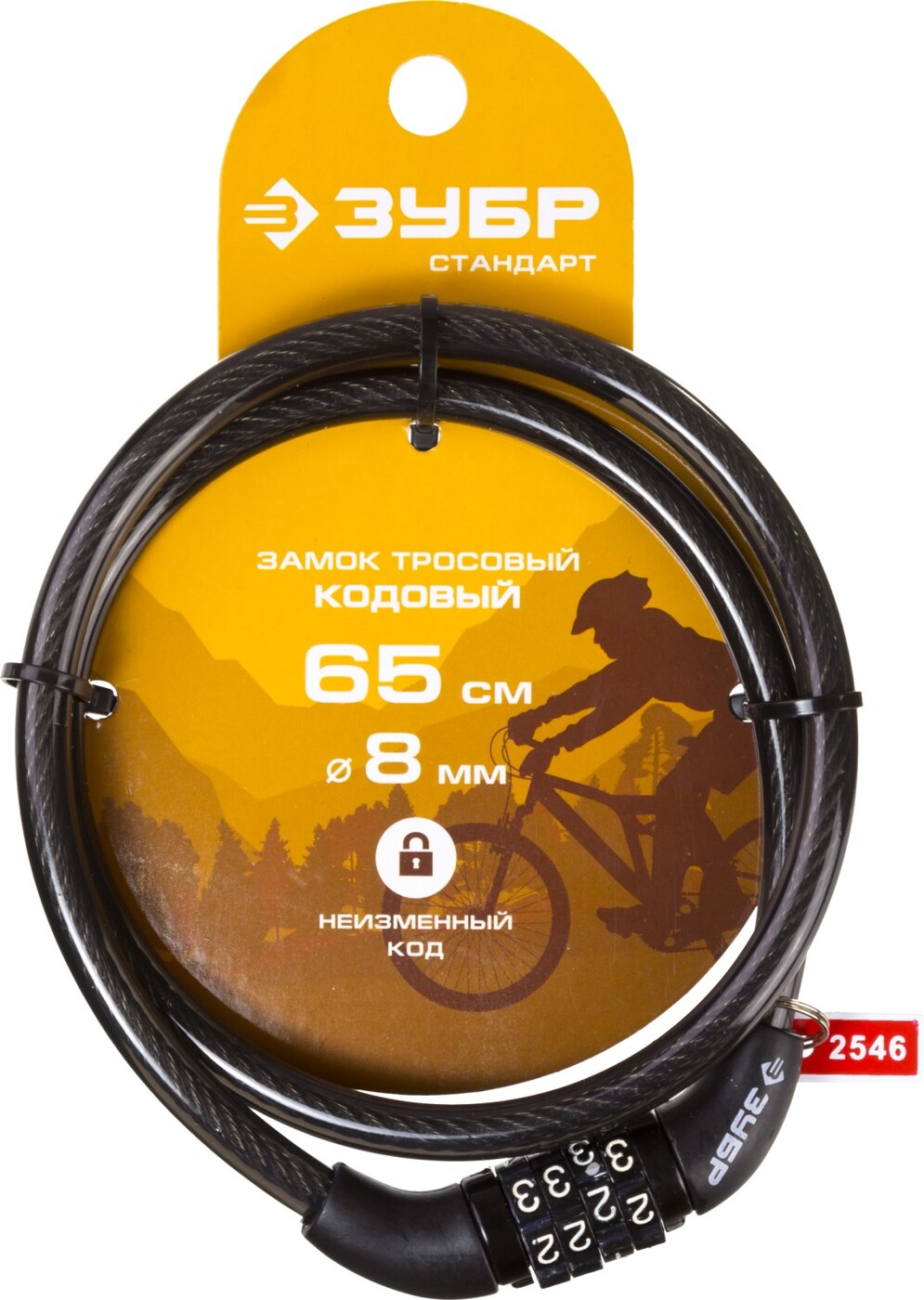замок для велосипеда, ЗУБР, кодовый, с неизменяемым кодом, длина троса - 650мм, d 8мм/замок для велосипеда/замок велосипедный/замок на велосипед/замок тросовый/замок для велосипеда кодовый - предназначен для обеспечения безопасности.Стальной трос обеспечи