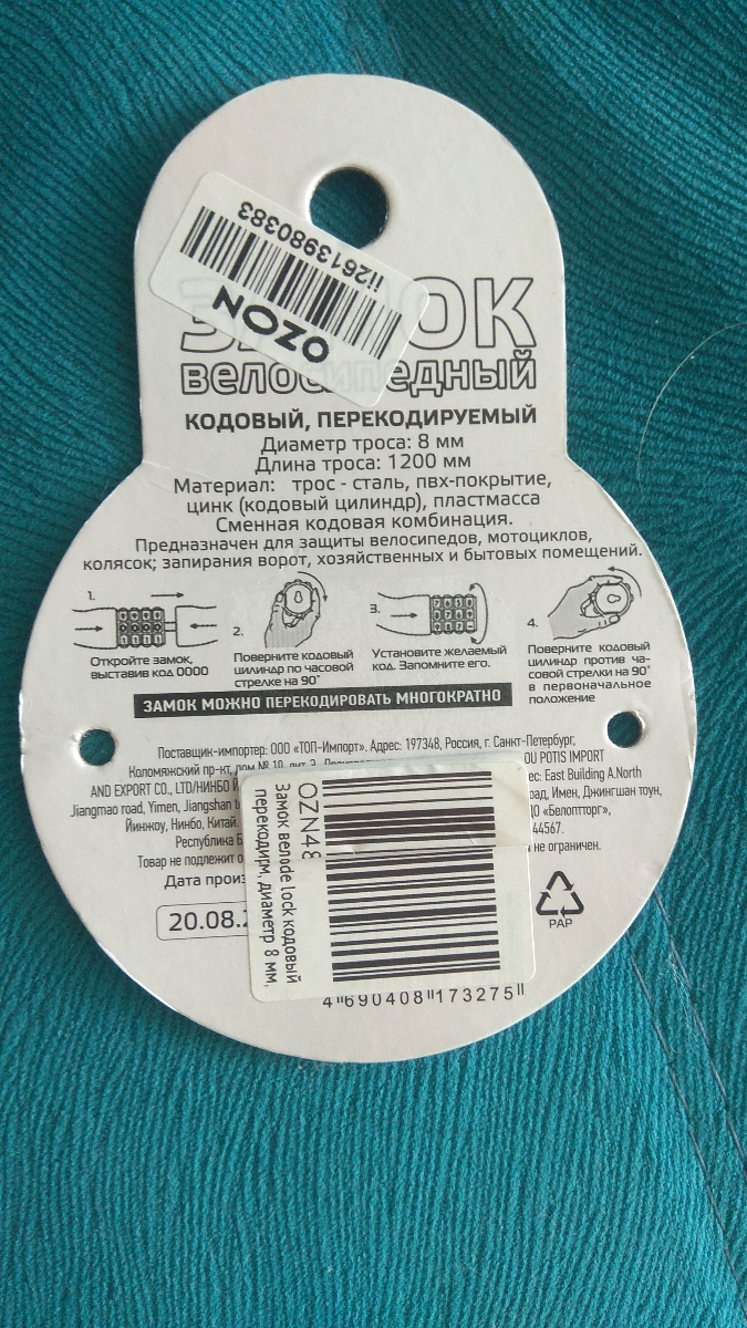 ТипВелозамок кодовый